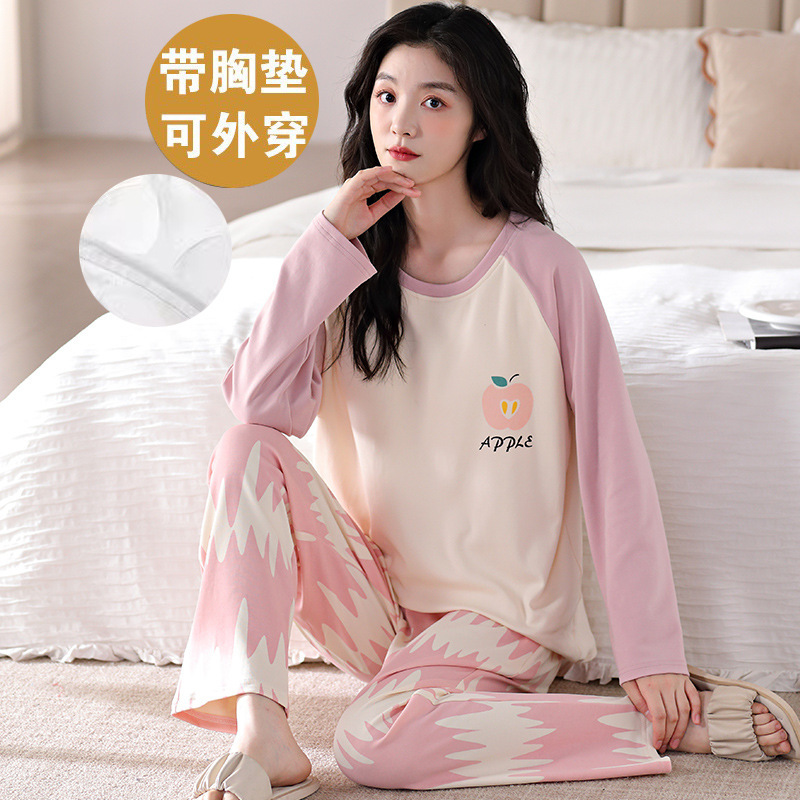 가을과 겨울 잠옷 여성의 긴 소매면 가슴 패드가 통합 된 초대형 가정용 의류 200kg 220kg 5XL스토어 가기