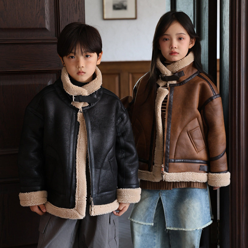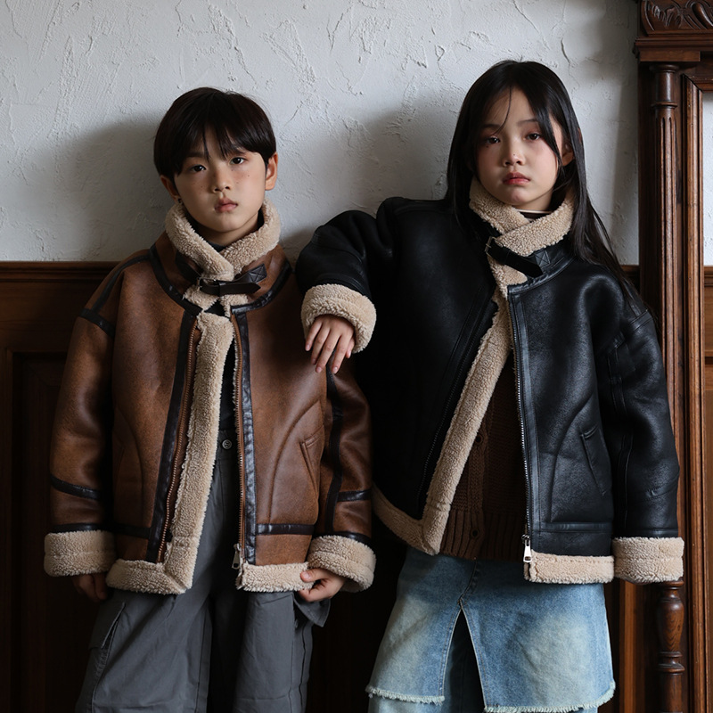 소년 스웨이드 재킷 2024 가을 겨울 어린이 가죽 자켓 소녀 겨울 모피 원피스 기모 두껍게스토어 가기