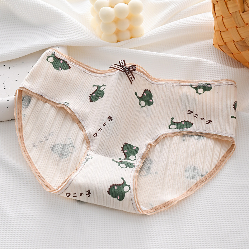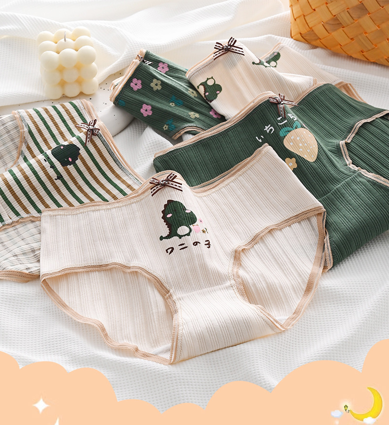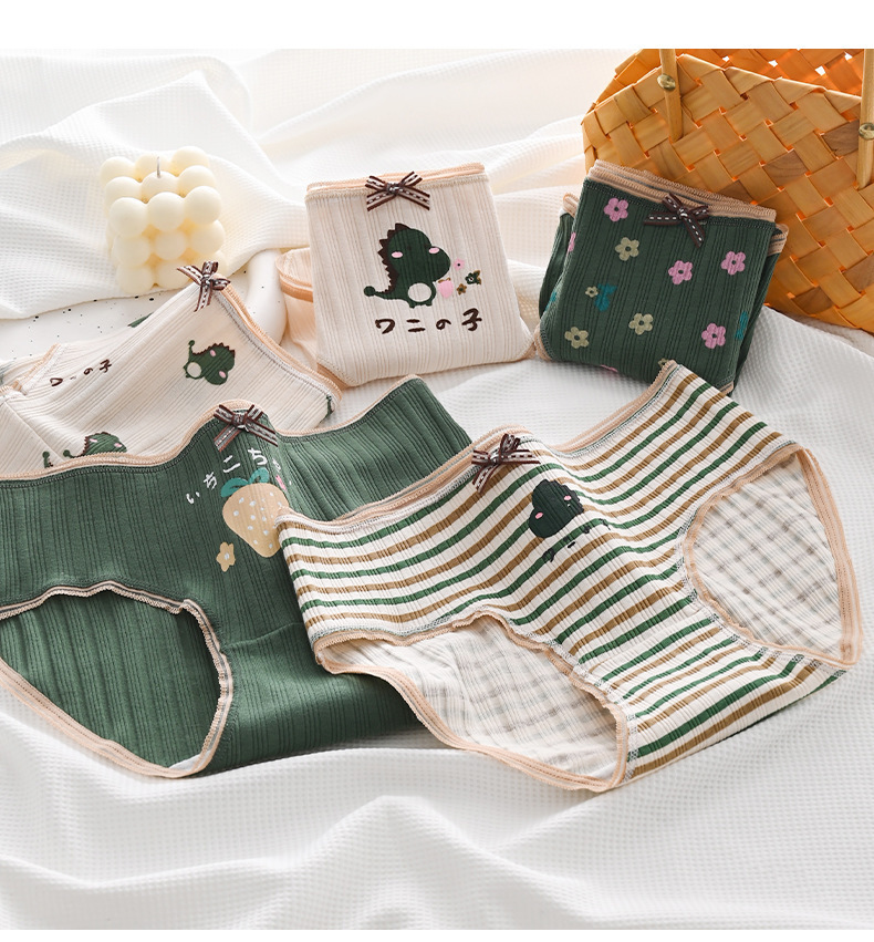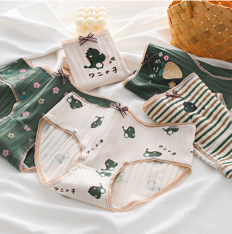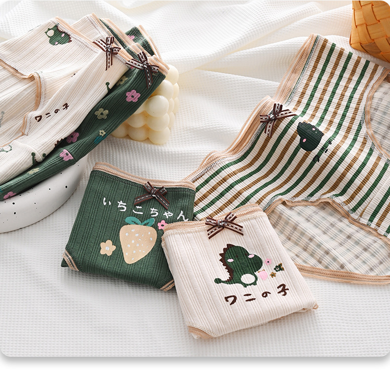 다크 그린 딸기 속옷 만화 소녀 학생 귀여운 작은 공룡 통기성 중간 허리 반바지 소녀 인쇄 속옷 머리스토어 가기