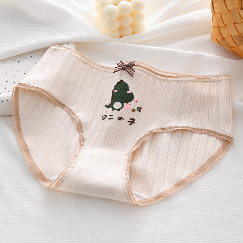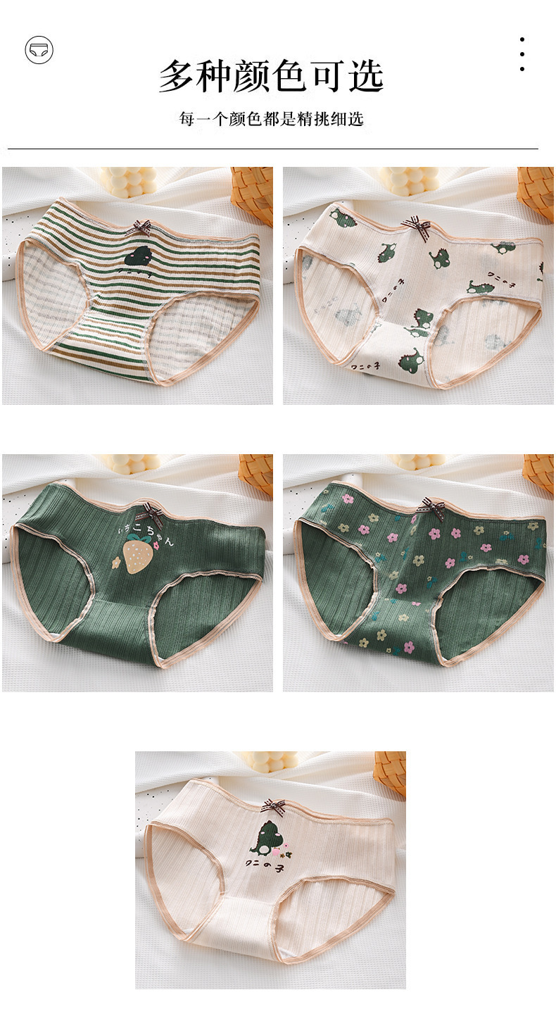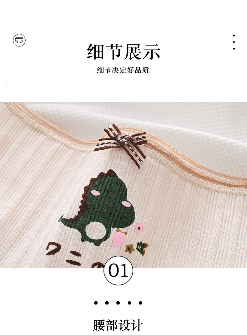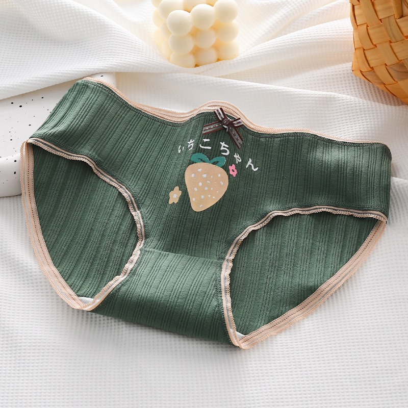 다크 그린 딸기 속옷 만화 소녀 학생 귀여운 작은 공룡 통기성 중간 허리 반바지 소녀 인쇄 속옷 머리스토어 가기