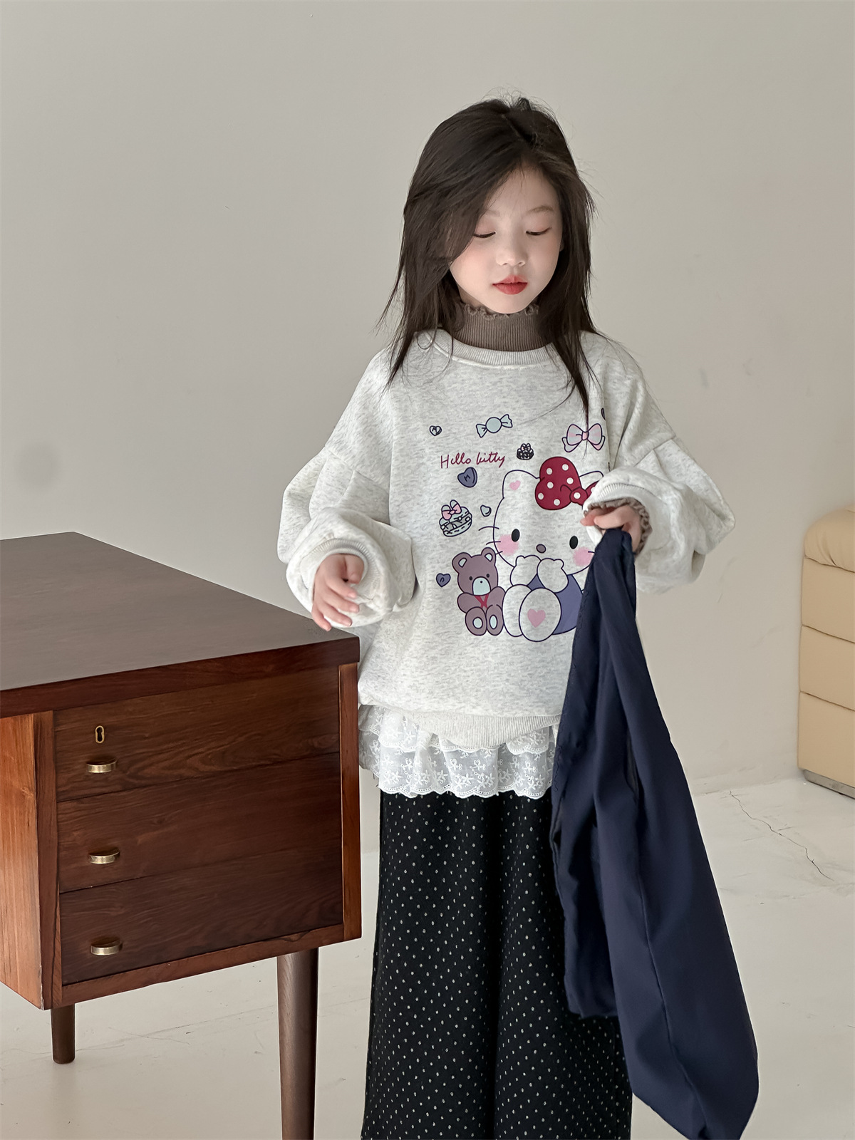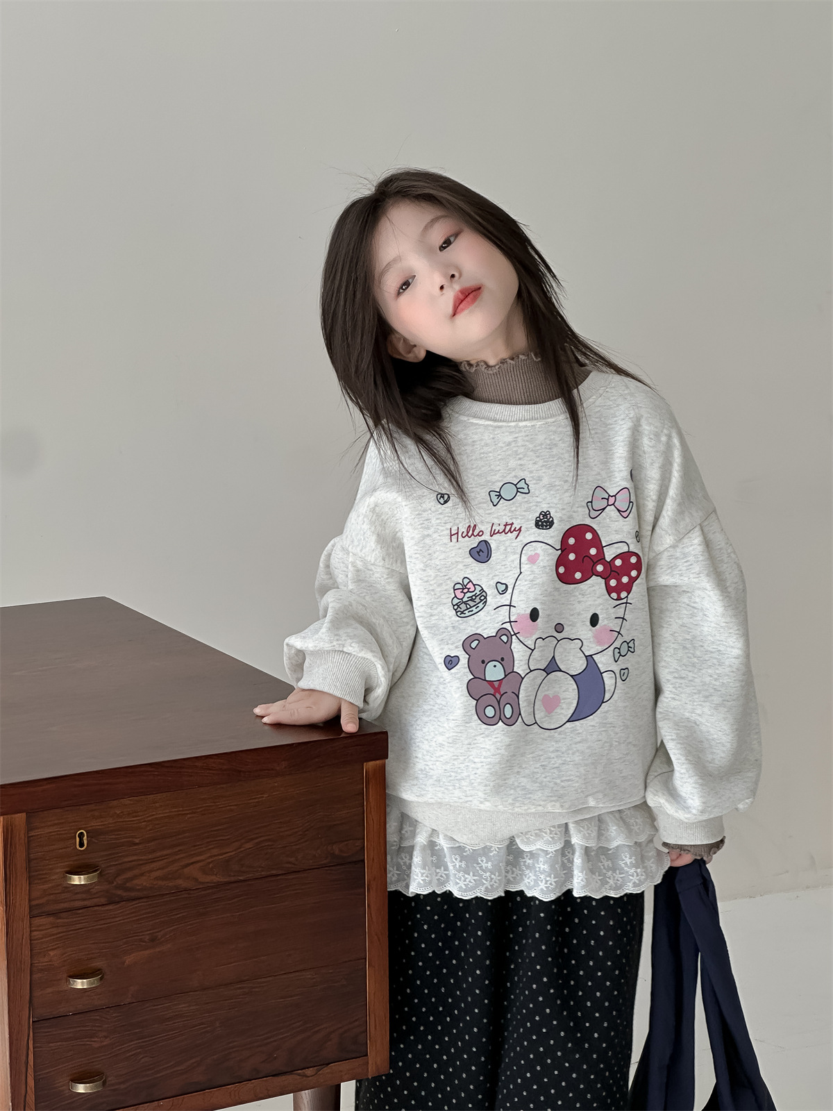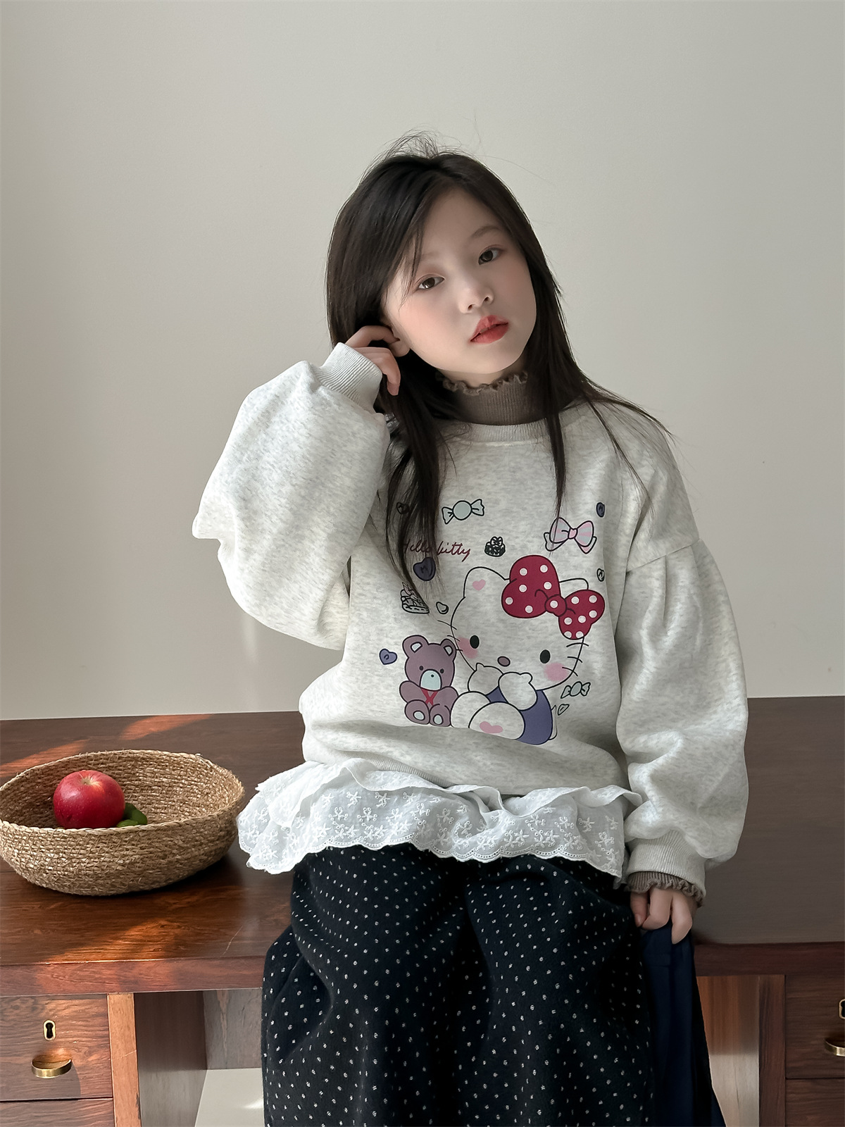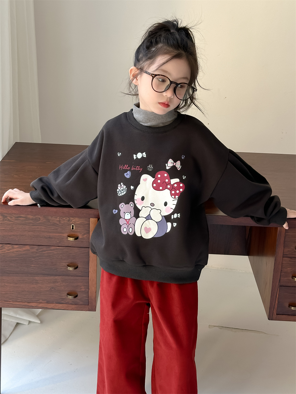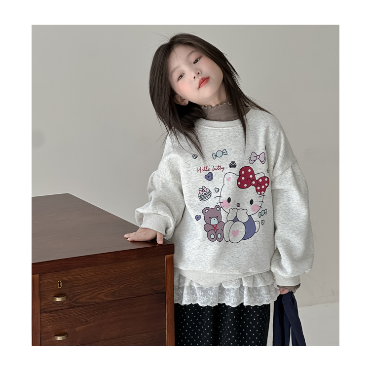 꽃과 2024 새로운 겨울 소녀 만화 스웨터 큰 어린이 기모 캐주얼 풀오버 탑 조수의 한국어 버전 찾기스토어 가기