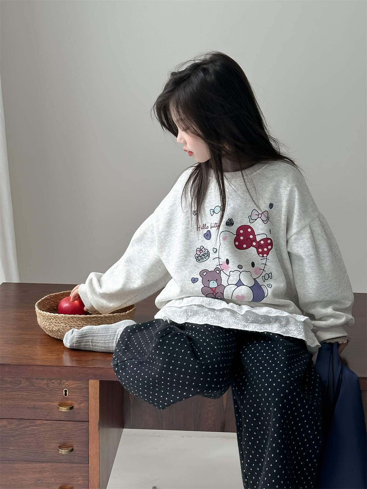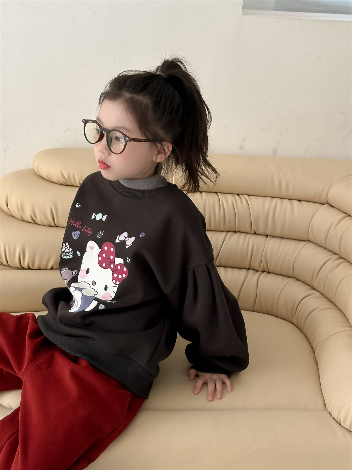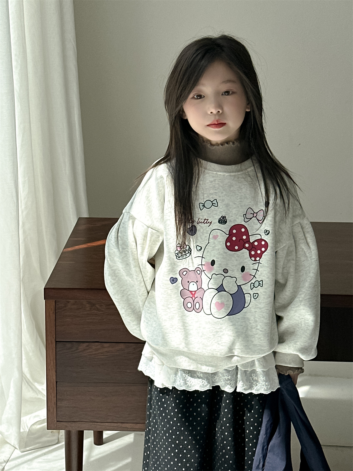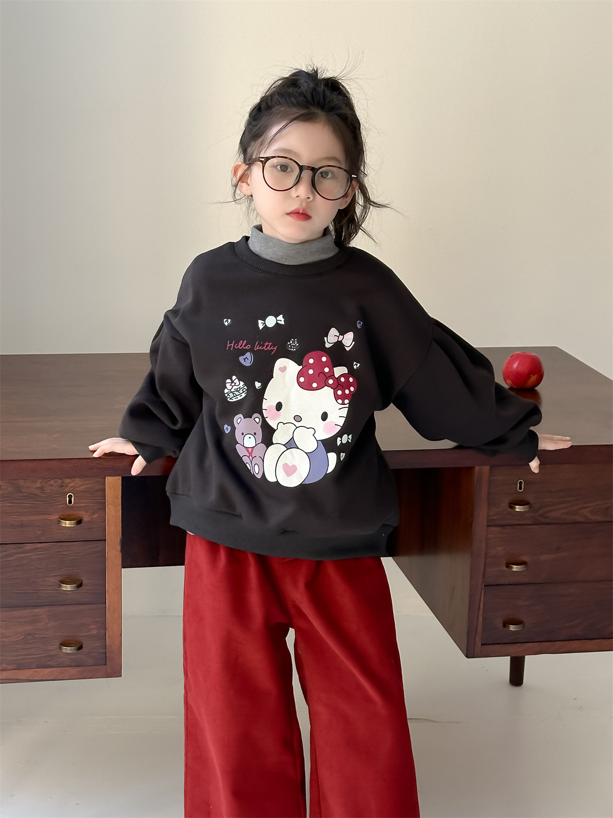 꽃과 2024 새로운 겨울 소녀 만화 스웨터 큰 어린이 기모 캐주얼 풀오버 탑 조수의 한국어 버전 찾기스토어 가기