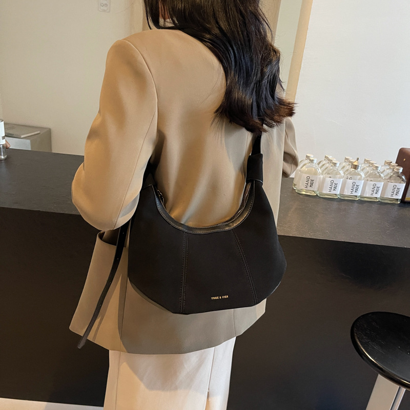 2024 새로운 틈새 Texturous Frosted Cowhide Crescent Moon Bag 캐주얼 올 매치 만두 백 세련된 어깨 언더암 여성용 가방