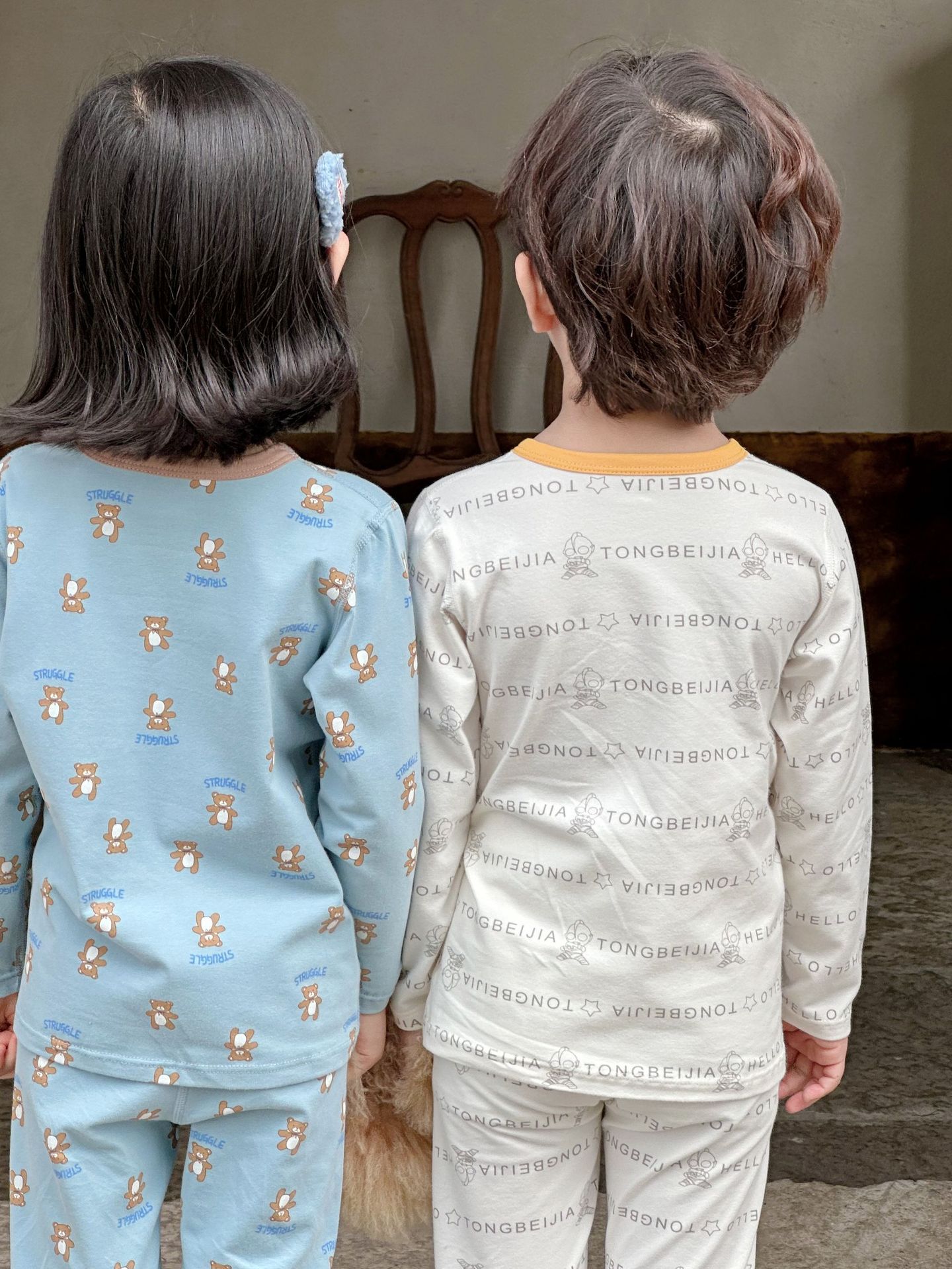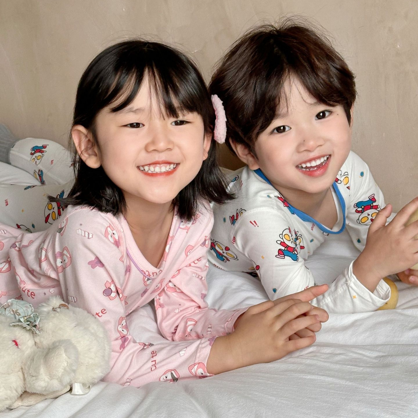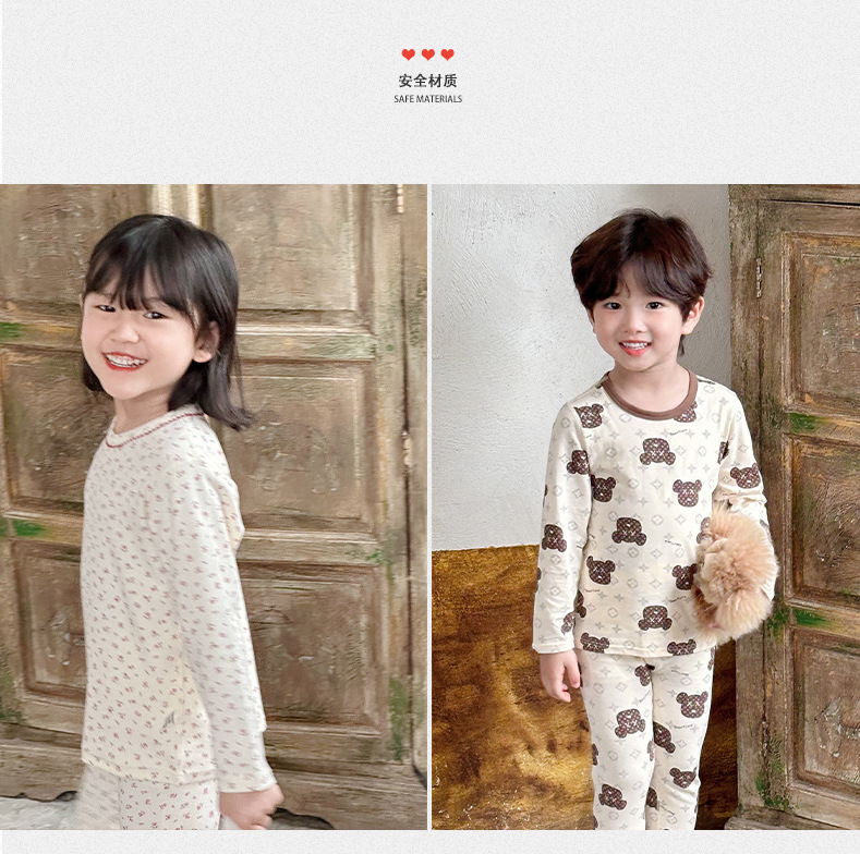 새로운 뼈없는 공예 어린이 라이크라 가을 옷과 바지 세트 아기 잠옷 소년 소녀 홈 옷