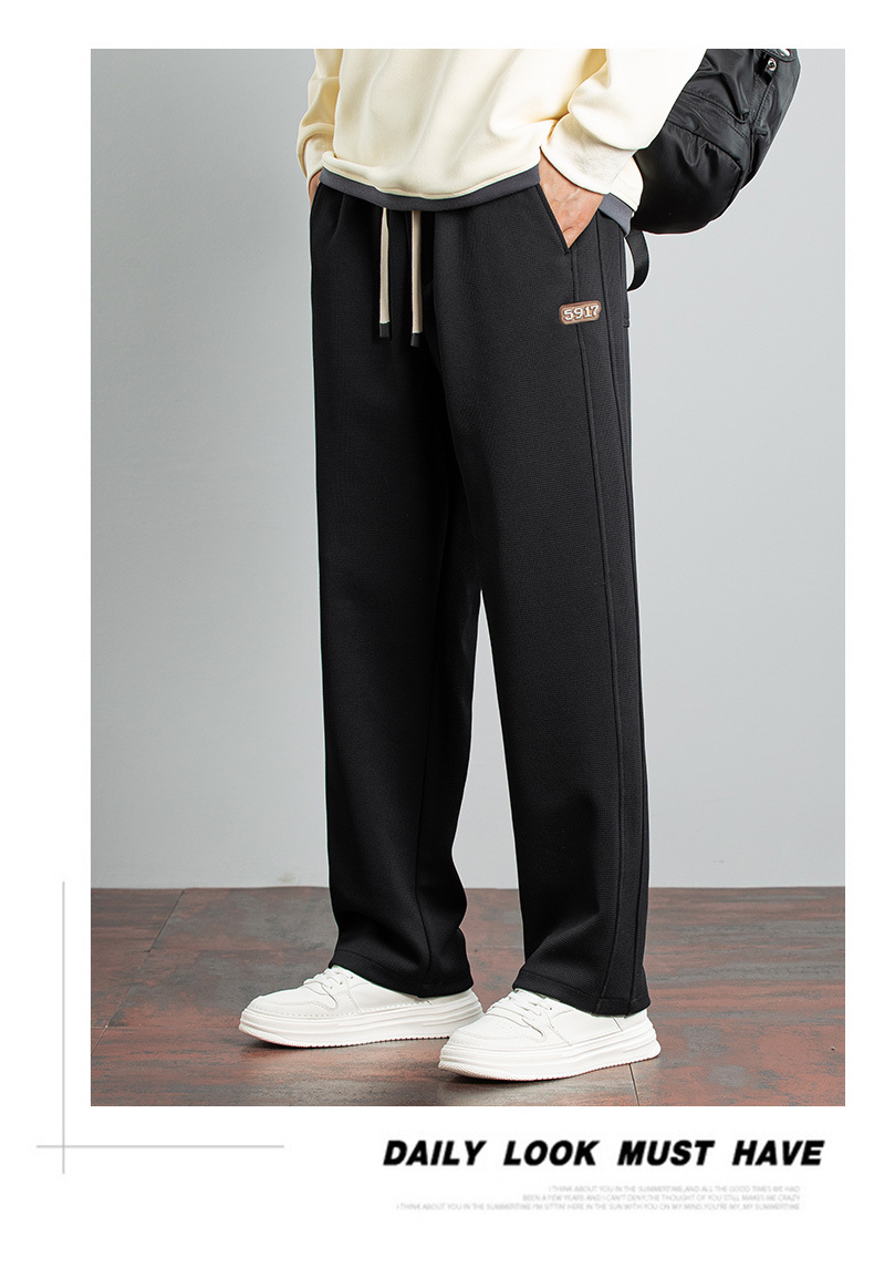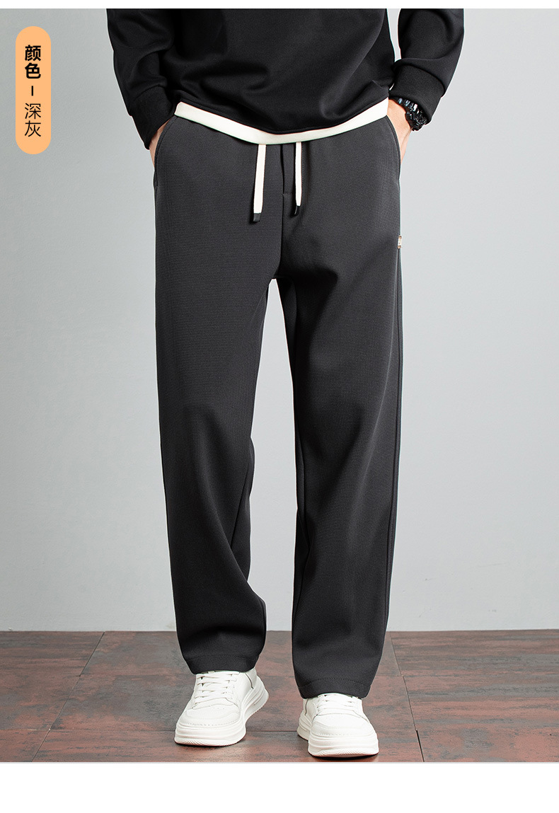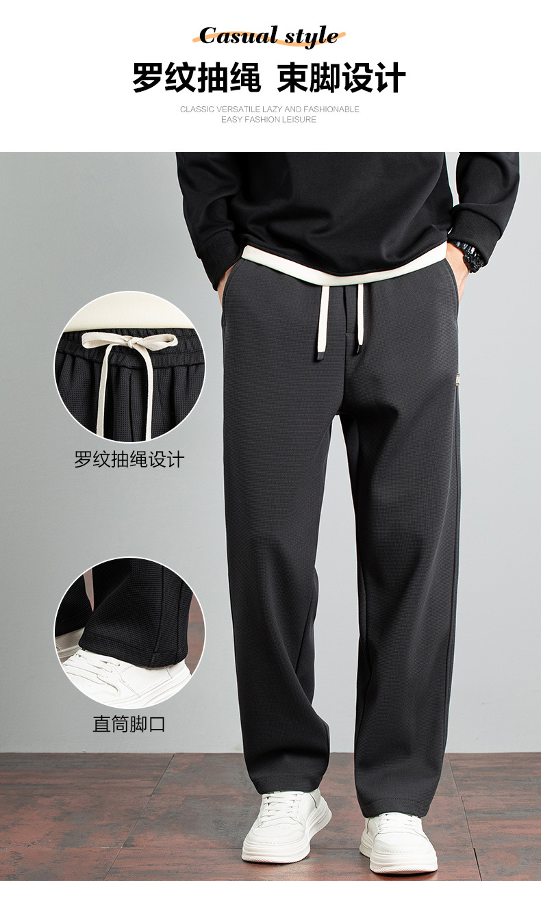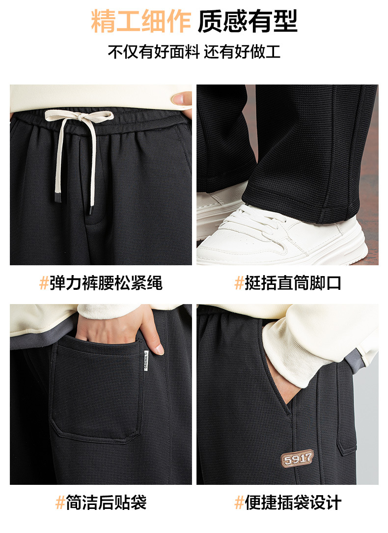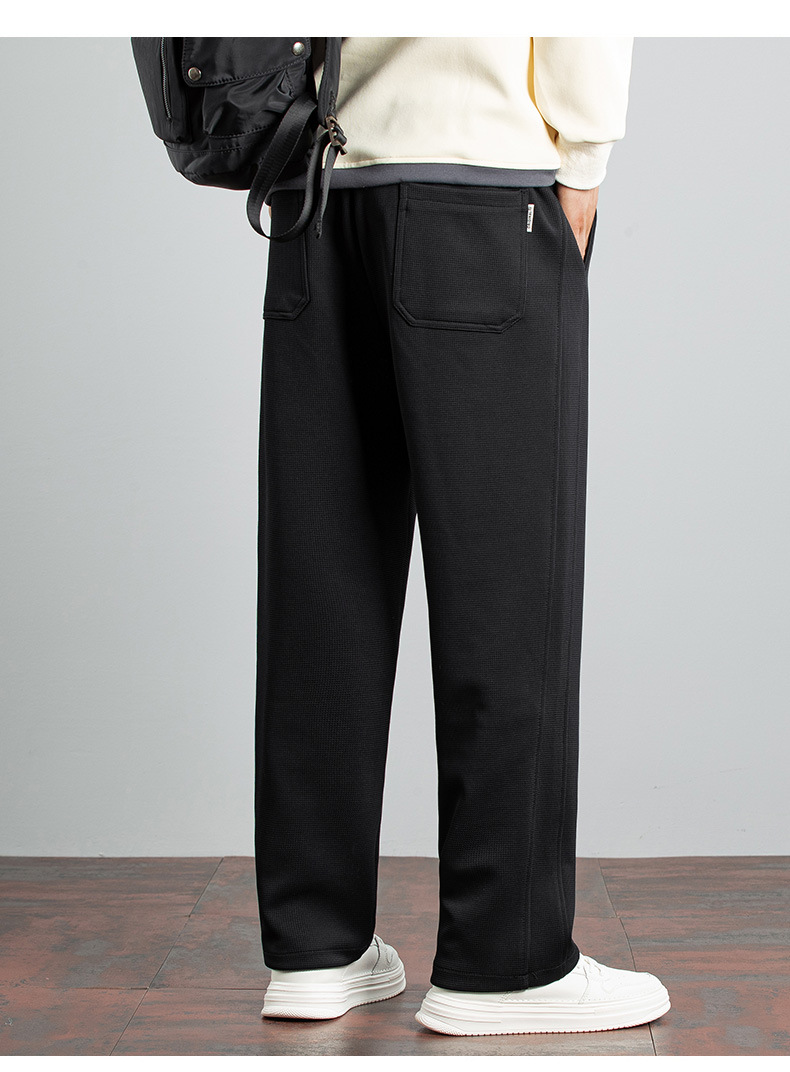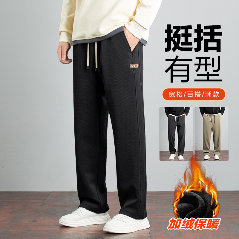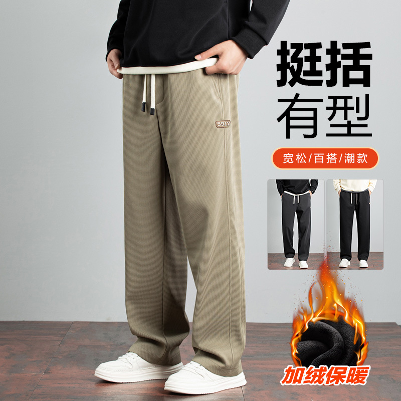 남성용 와플 패턴 스웨트팬츠, 가을 겨울용 루즈핏 와이드 레그 스트레이트 팬츠, 기모 안감, 고급스러운 스포츠 캐주얼 팬츠, 트렌디스토어 가기