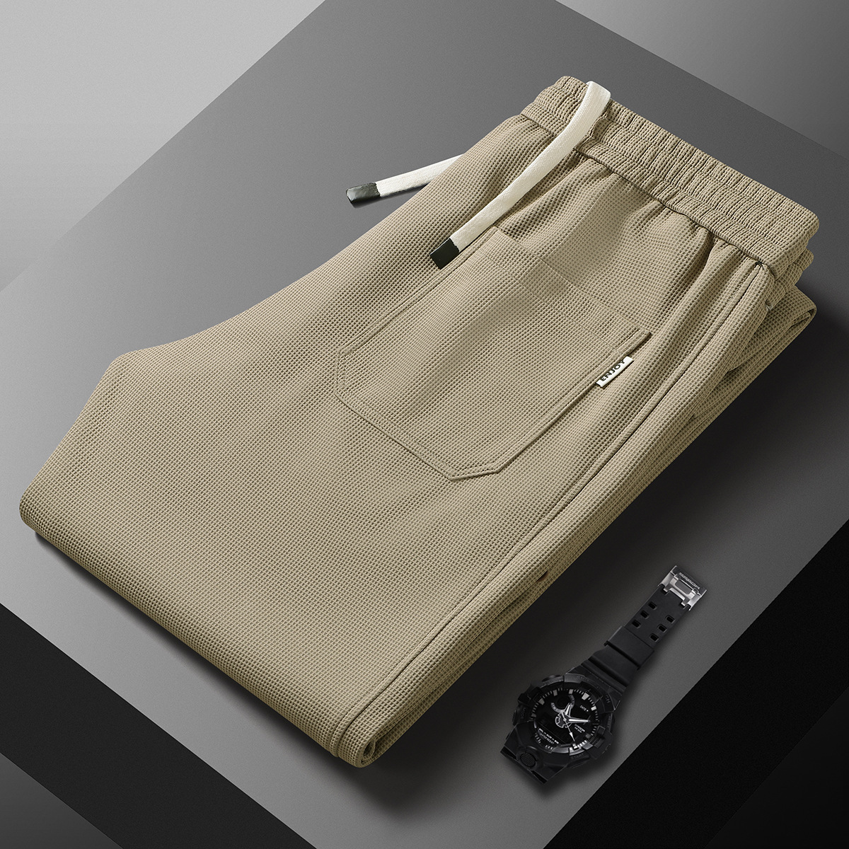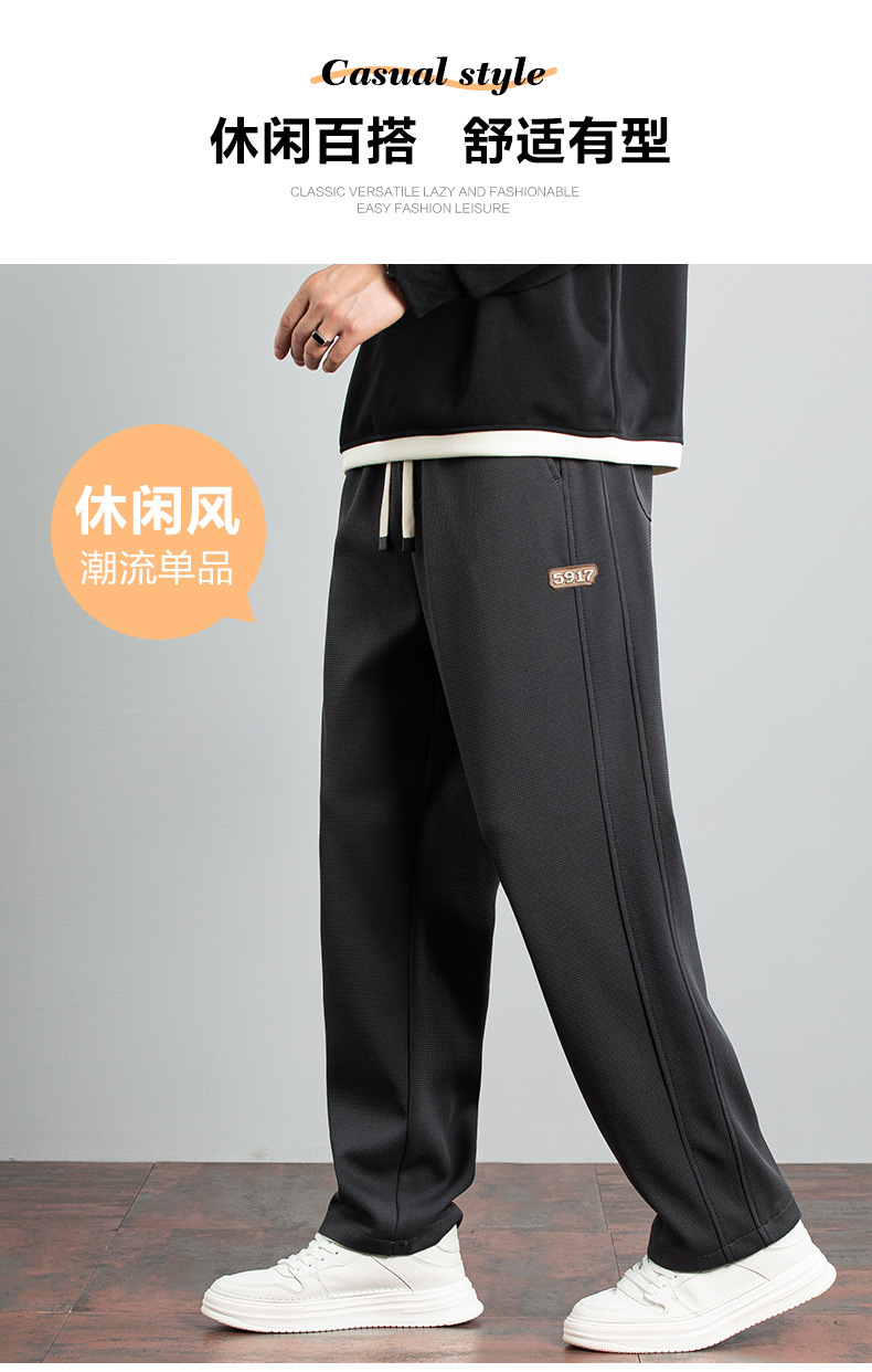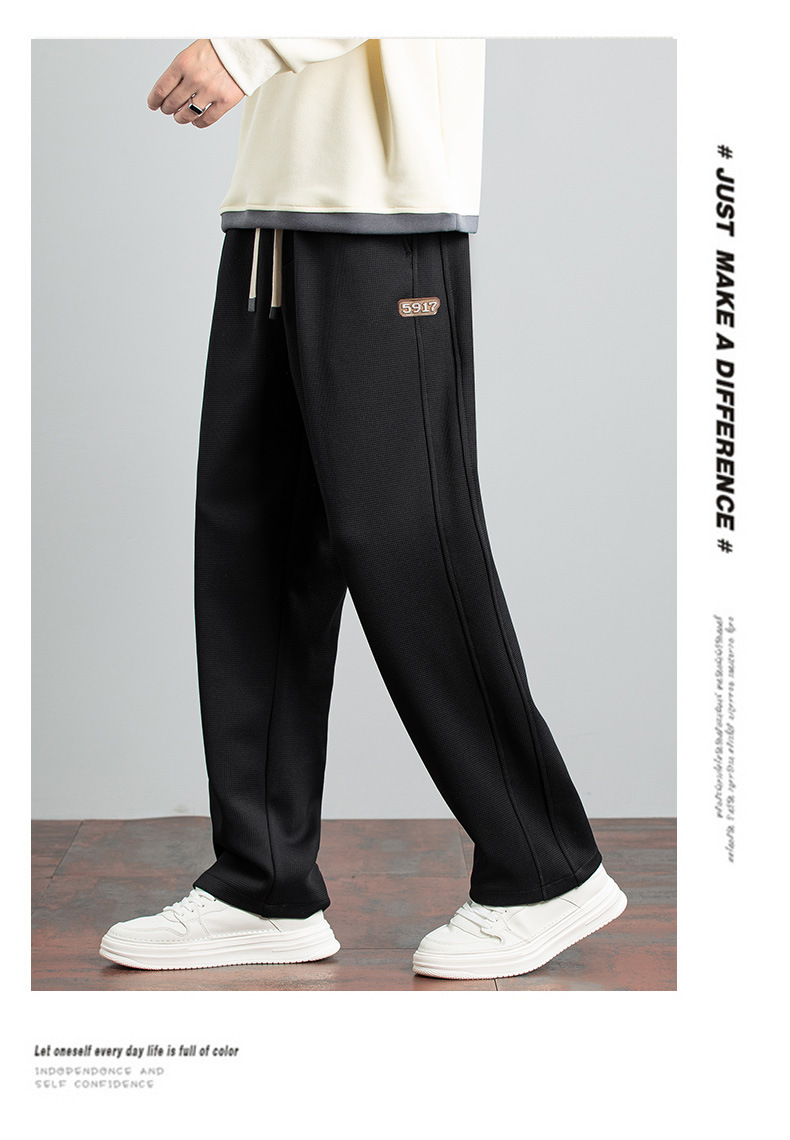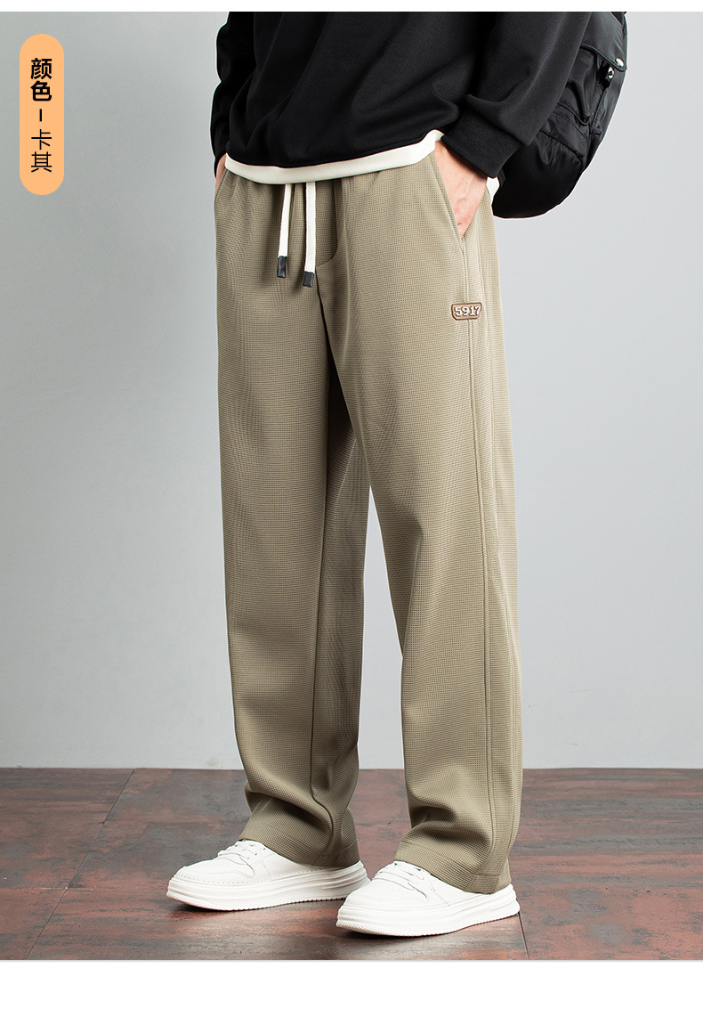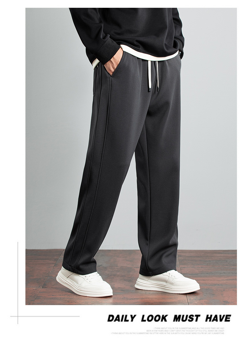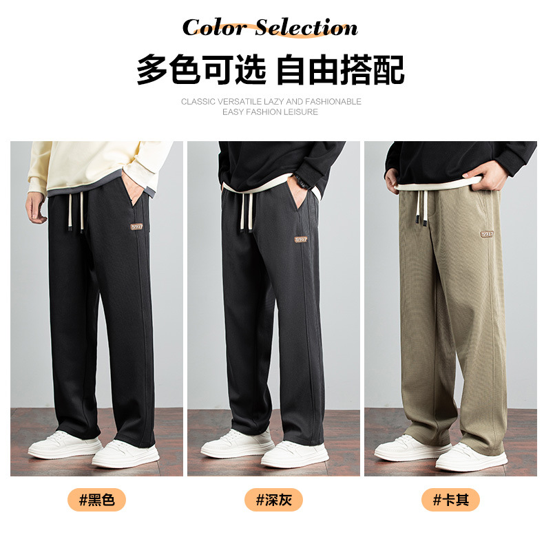 남성용 와플 패턴 스웨트팬츠, 가을 겨울용 루즈핏 와이드 레그 스트레이트 팬츠, 기모 안감, 고급스러운 스포츠 캐주얼 팬츠, 트렌디스토어 가기