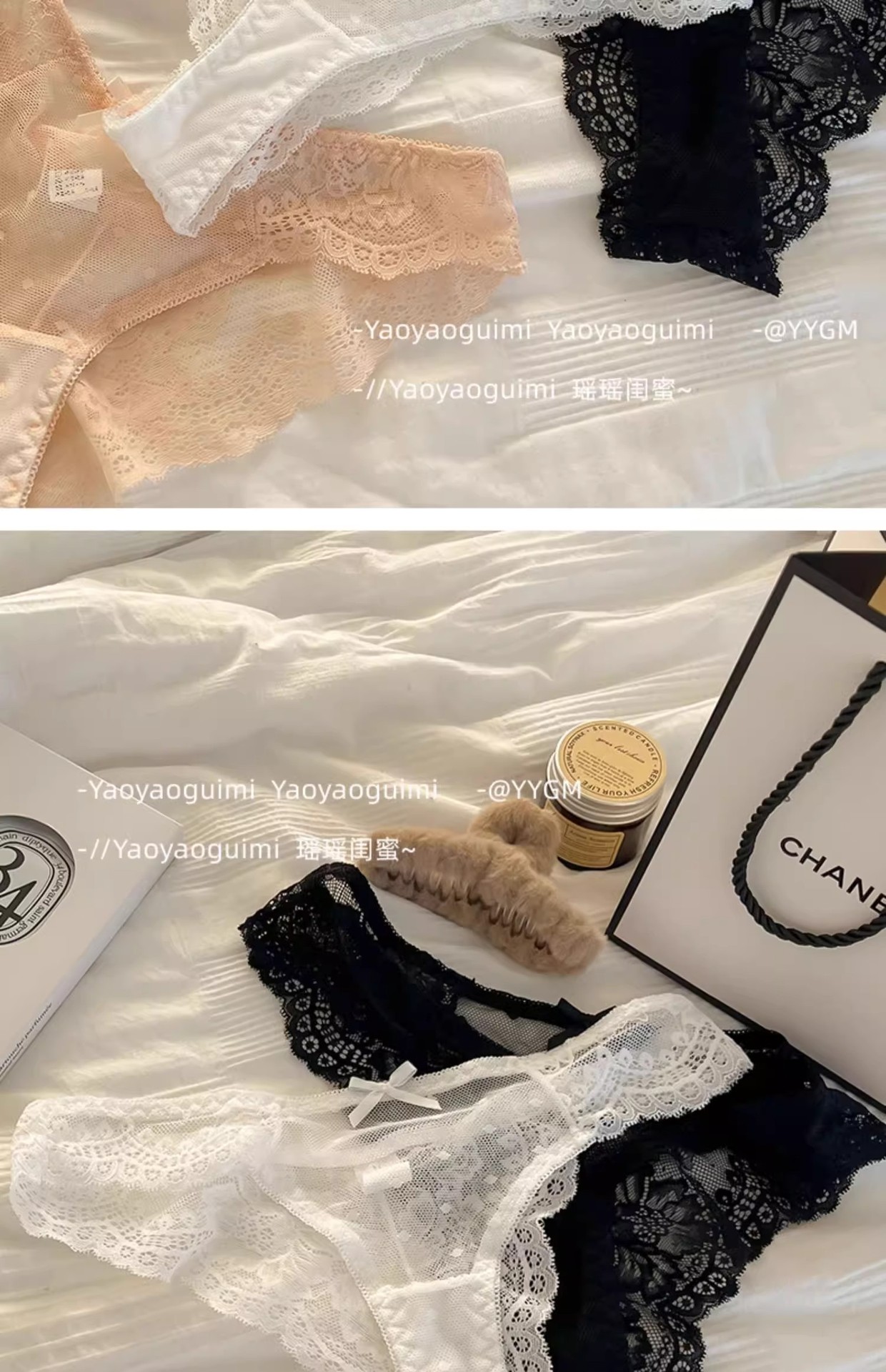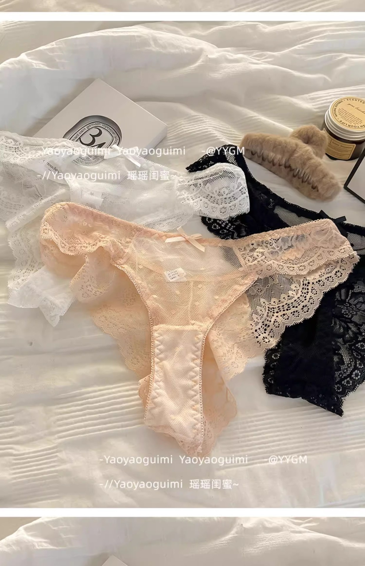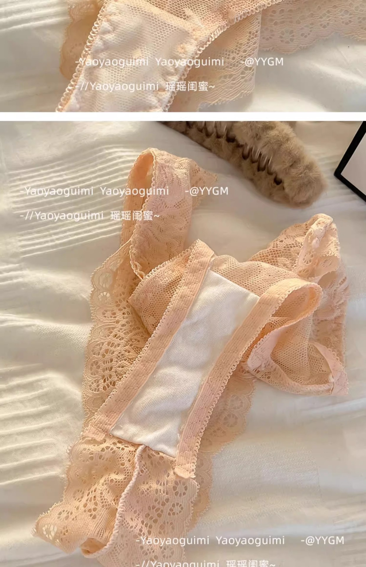 Yaoyao 여자 친구 레이스 소녀 낮은 허리 브리프 높은 포크 절반 엉덩이 유럽과 미국 속옷 섹시한 플러스 사이즈 핑크 끈