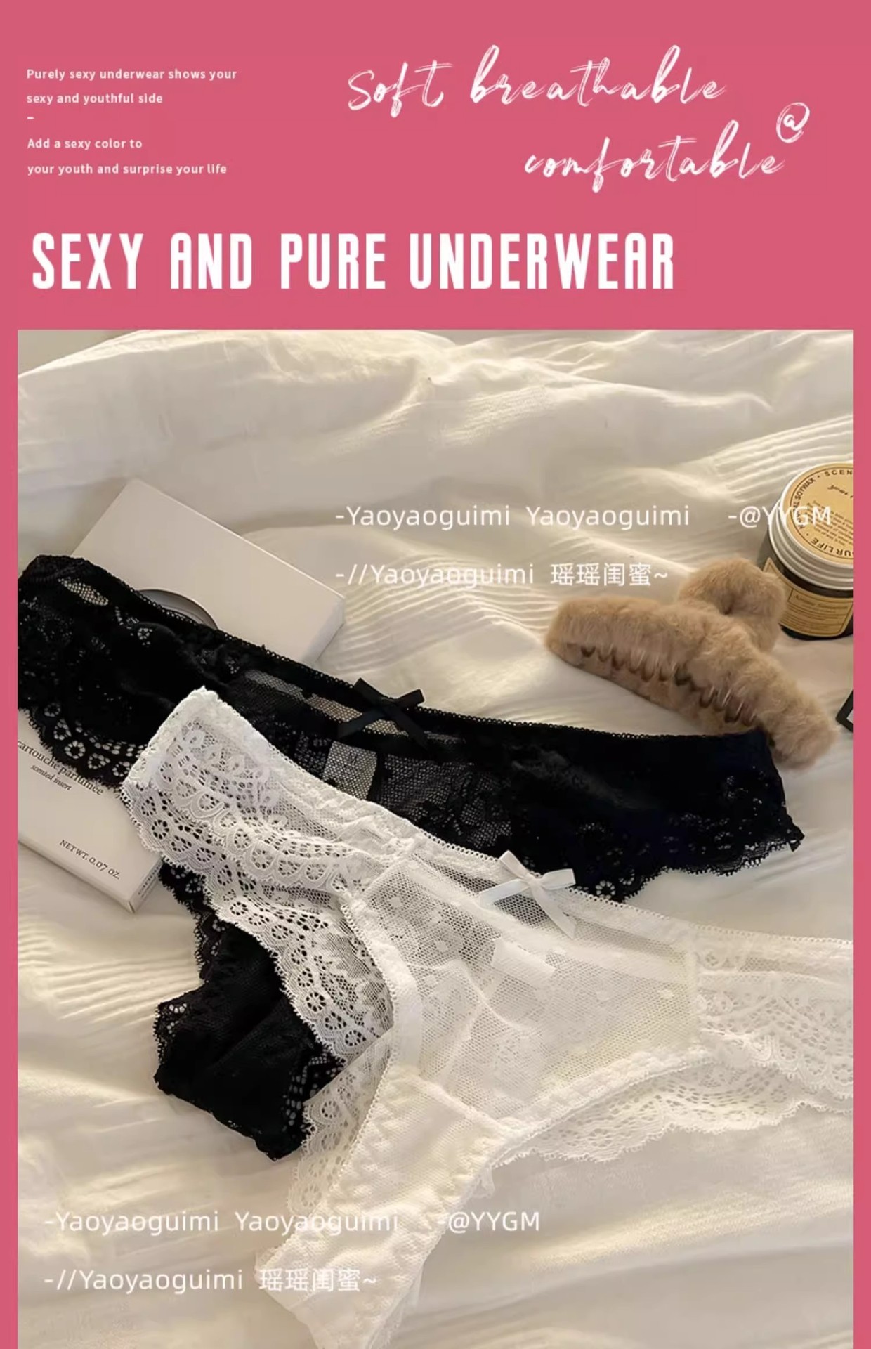 Yaoyao 여자 친구 레이스 소녀 낮은 허리 브리프 높은 포크 절반 엉덩이 유럽과 미국 속옷 섹시한 플러스 사이즈 핑크 끈스토어 가기