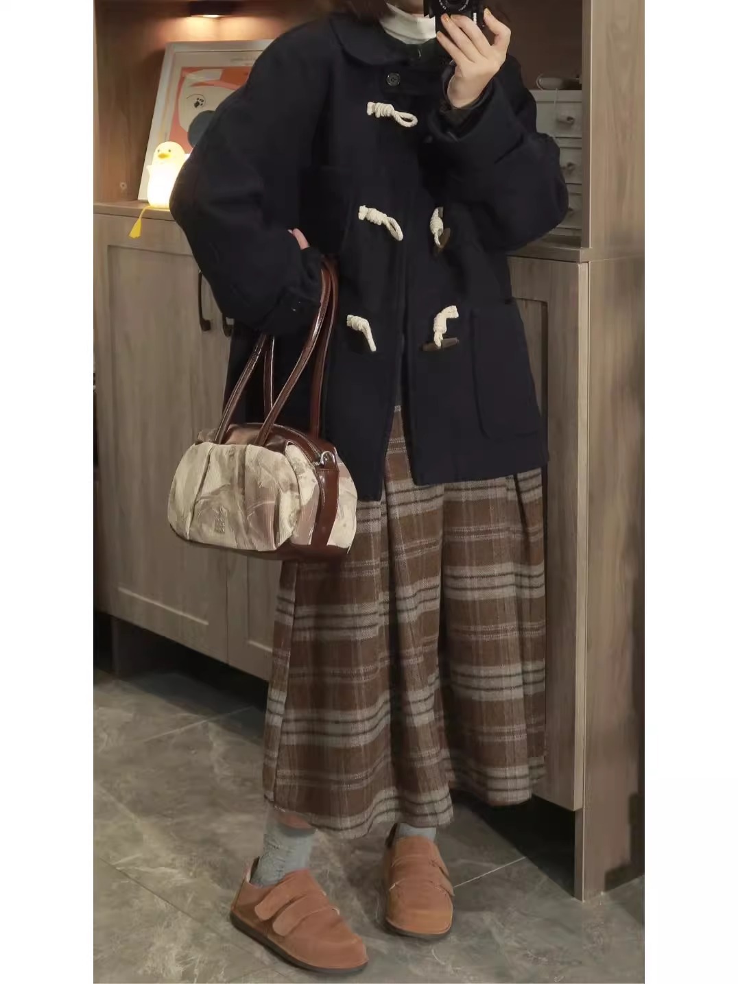 프랑스 레트로 대학 스타일 주름 치마 두꺼운 모직 우아한 격자 무늬 스커트 2024 새로운 가을과 겨울 중간 길이 스커트스토어 가기