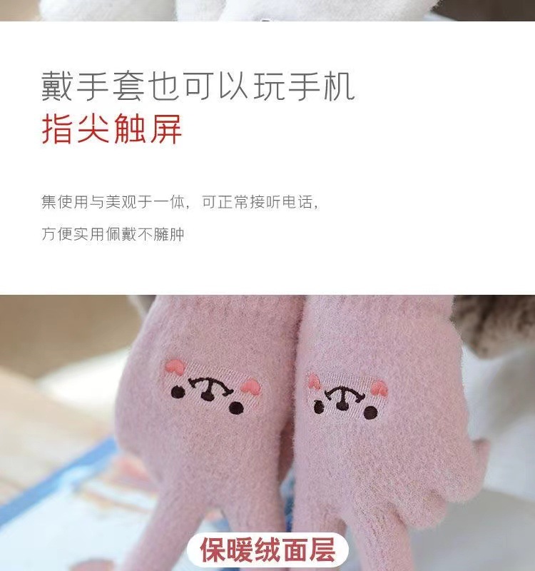 귀여운 여성의 승차장 양모 니트 장갑 겨울 기모 따뜻한 학생 터치 스크린 플러시 스마일리 장갑스토어 가기
