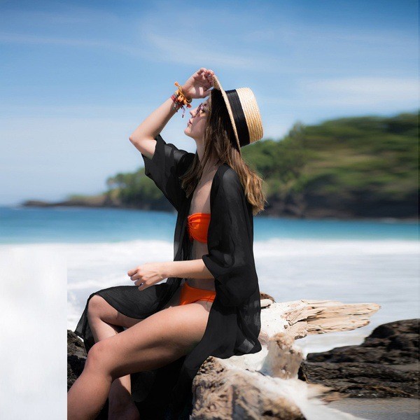 새로운 유럽과 미국의 쉬폰 주름 카디건 비치 목도리 비키니 외부 블라우스 수영복 선스크린 셔츠스토어 가기