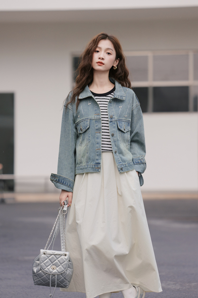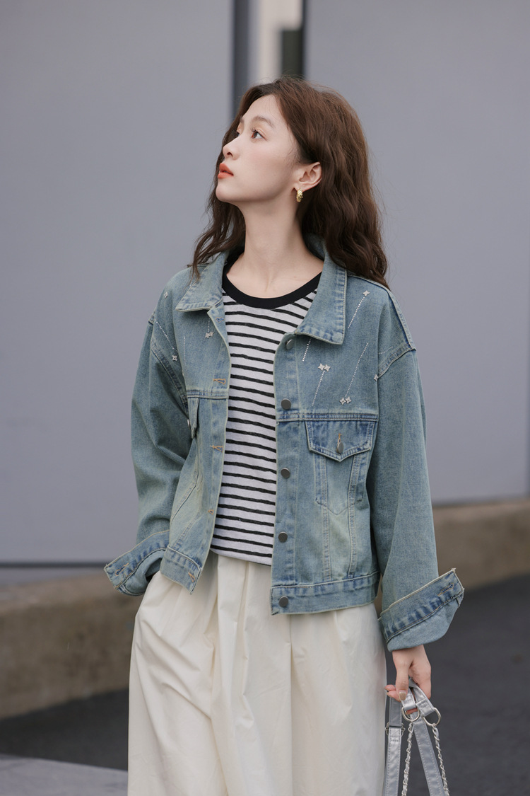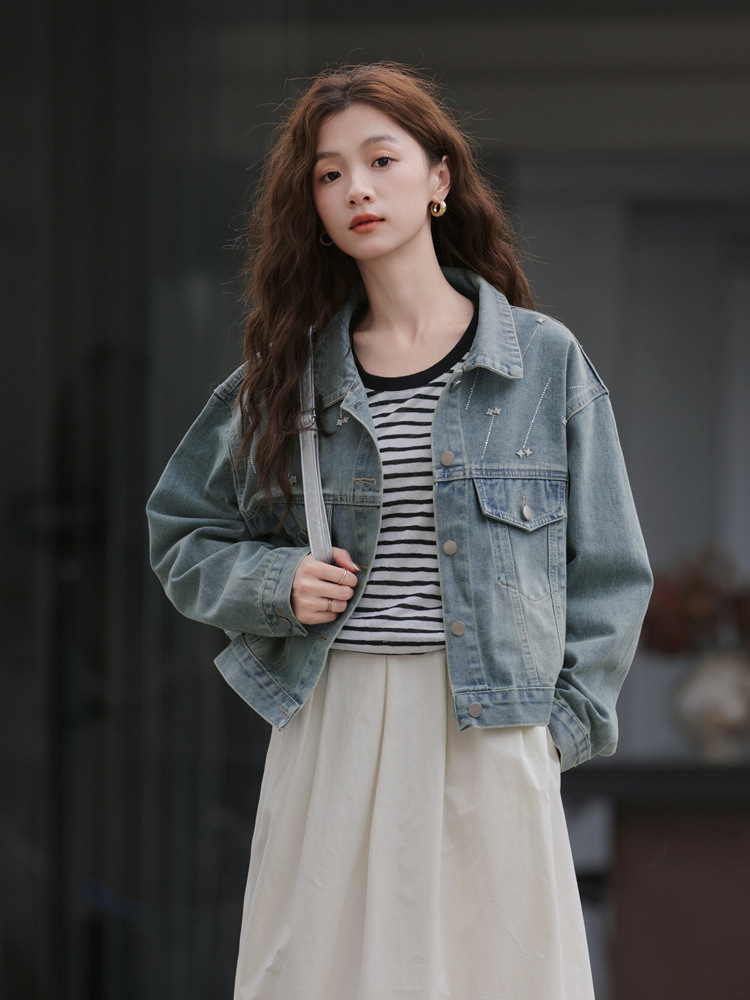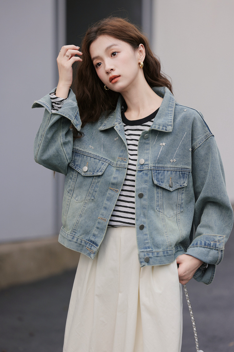 가을 2024 새로운 디자인 감각 데님 짧은 코트 여성 유성 비 작은 재킷 탑 여성