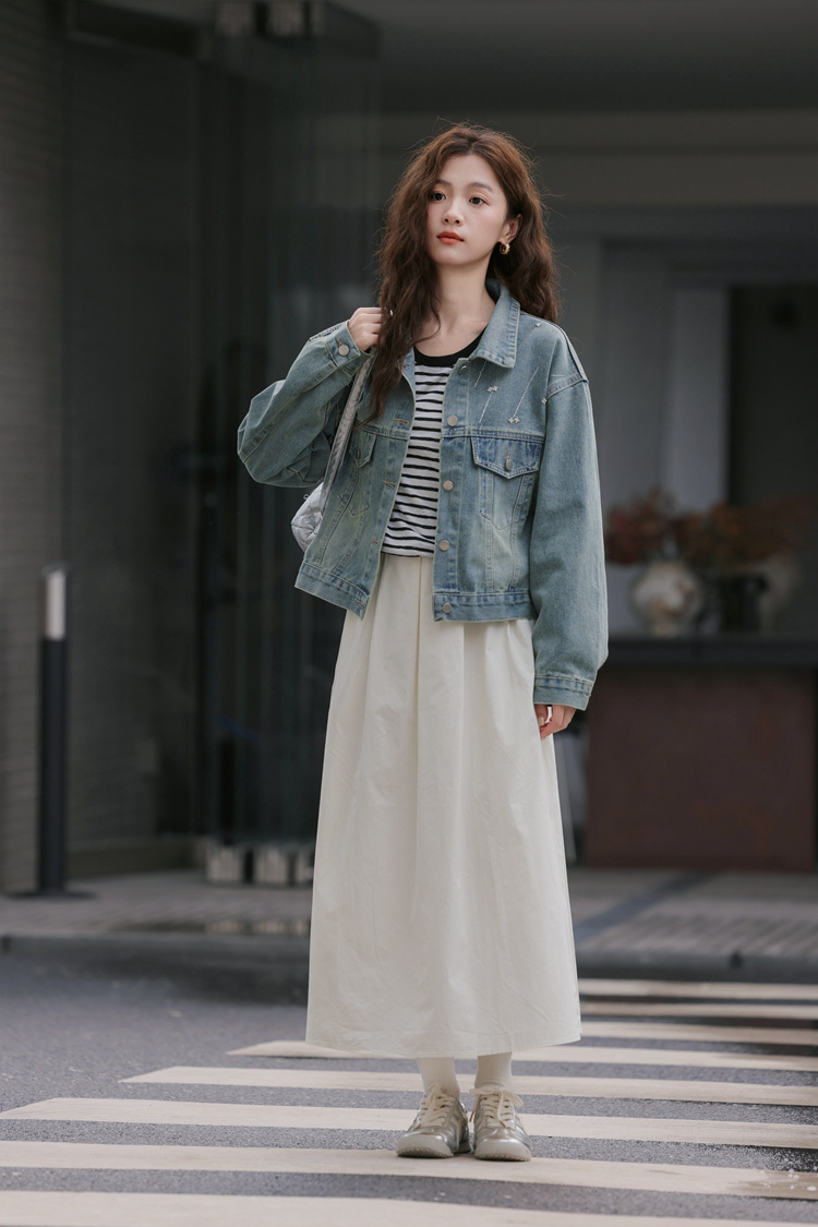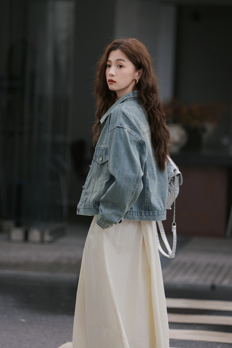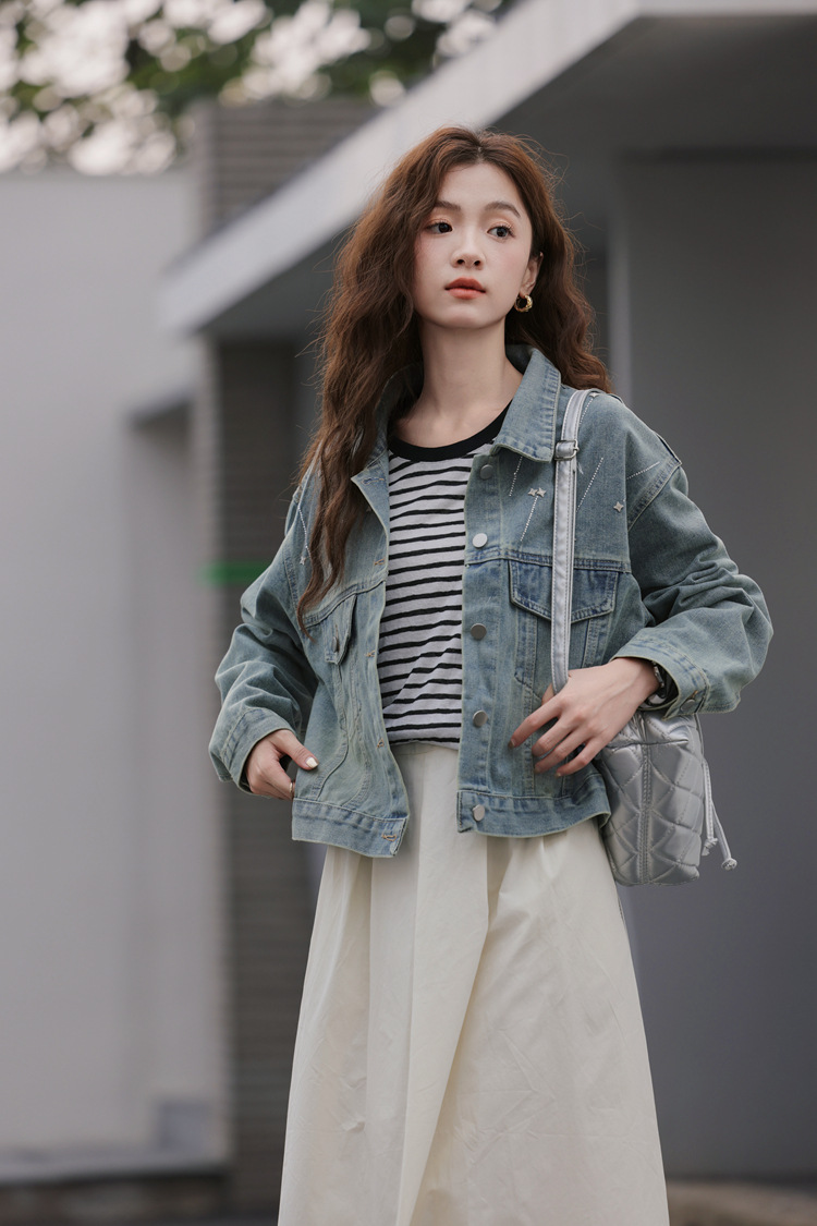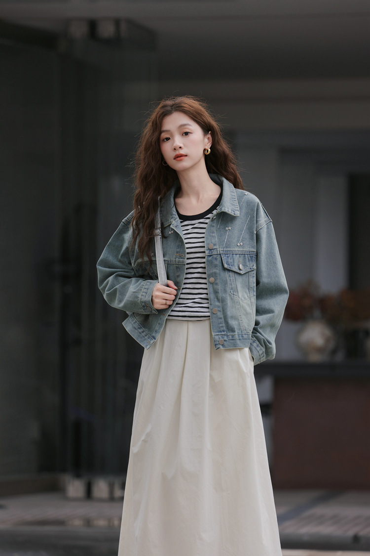 가을 2024 새로운 디자인 감각 데님 짧은 코트 여성 유성 비 작은 재킷 탑 여성