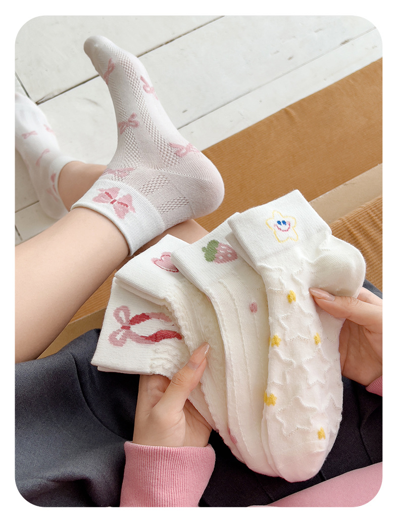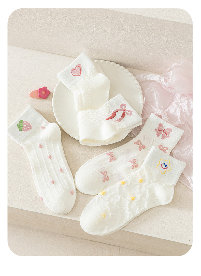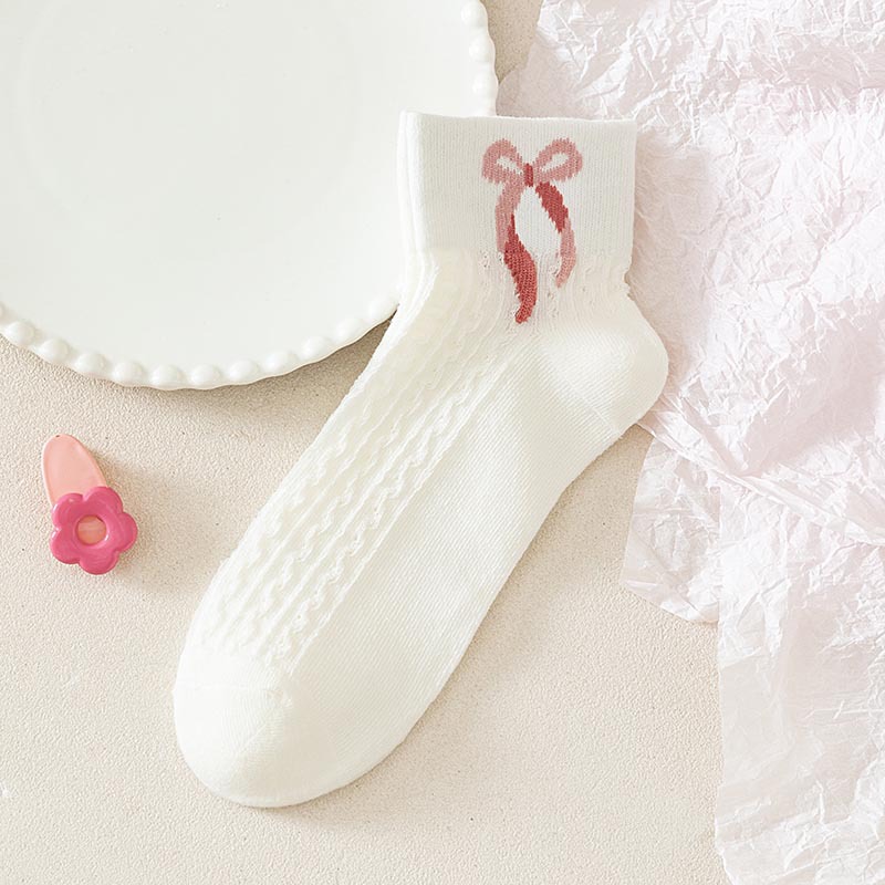 Zhuji 양말 여성의 일본 흰색 사랑 달콤한 튜브 양말 귀여운 면 양말 활 양말 면 여성 양말 조수
