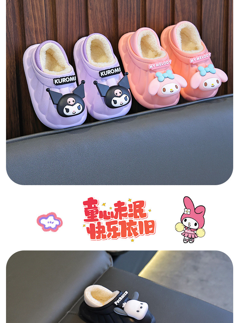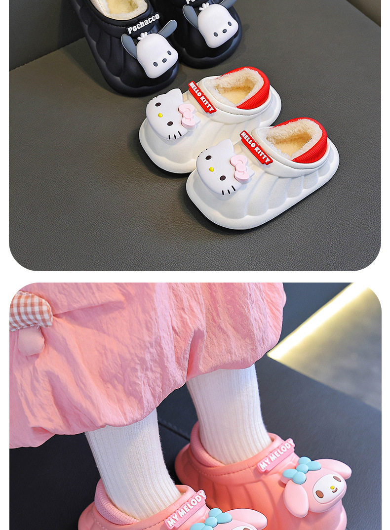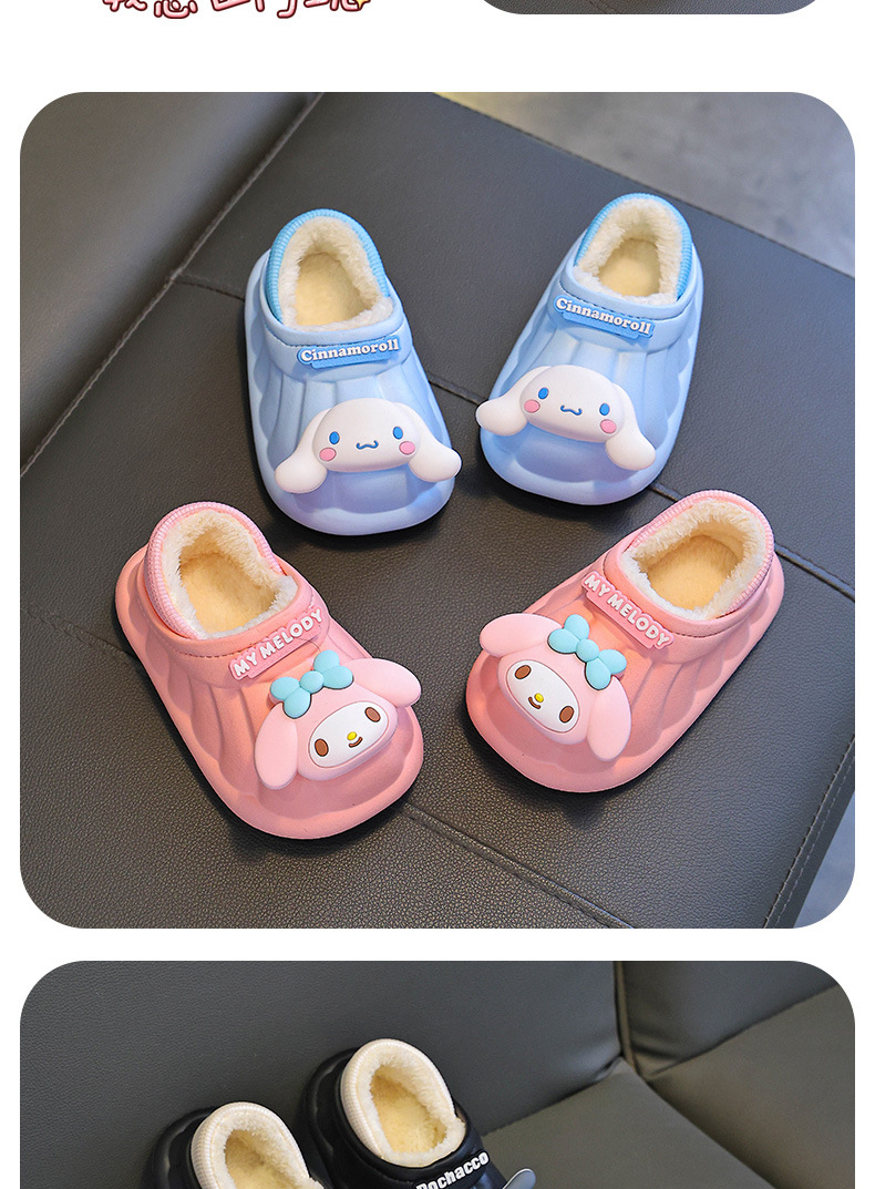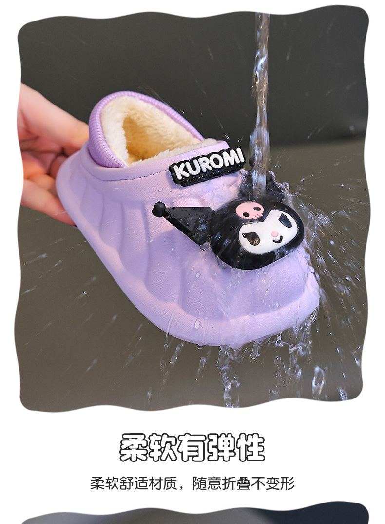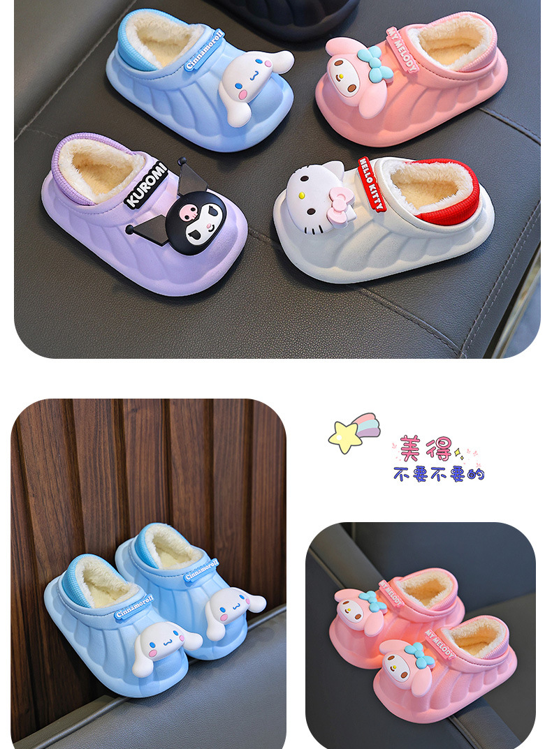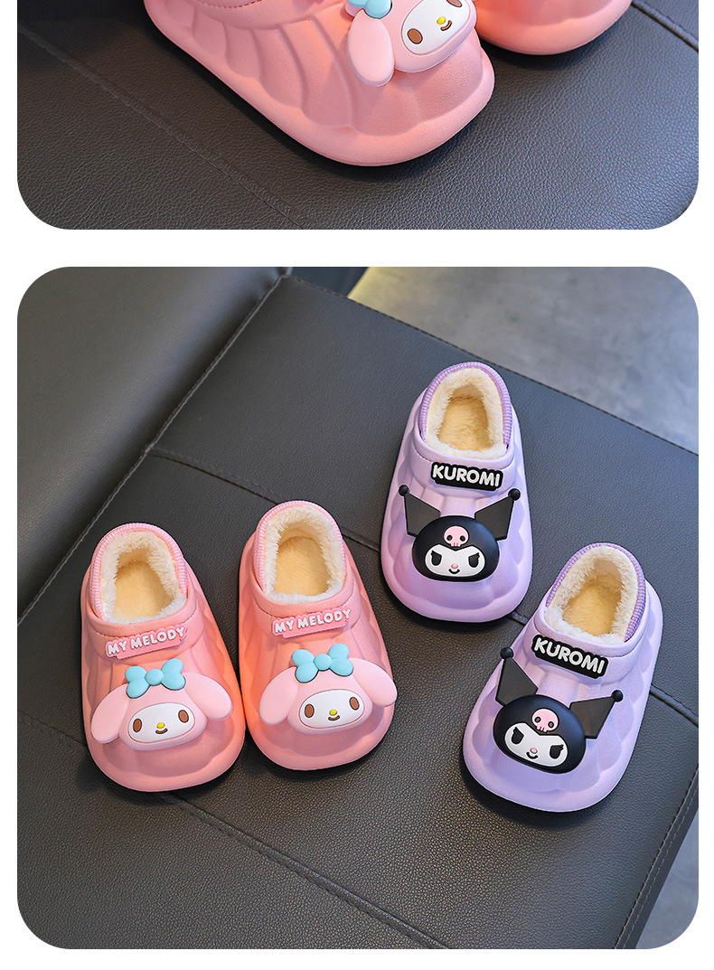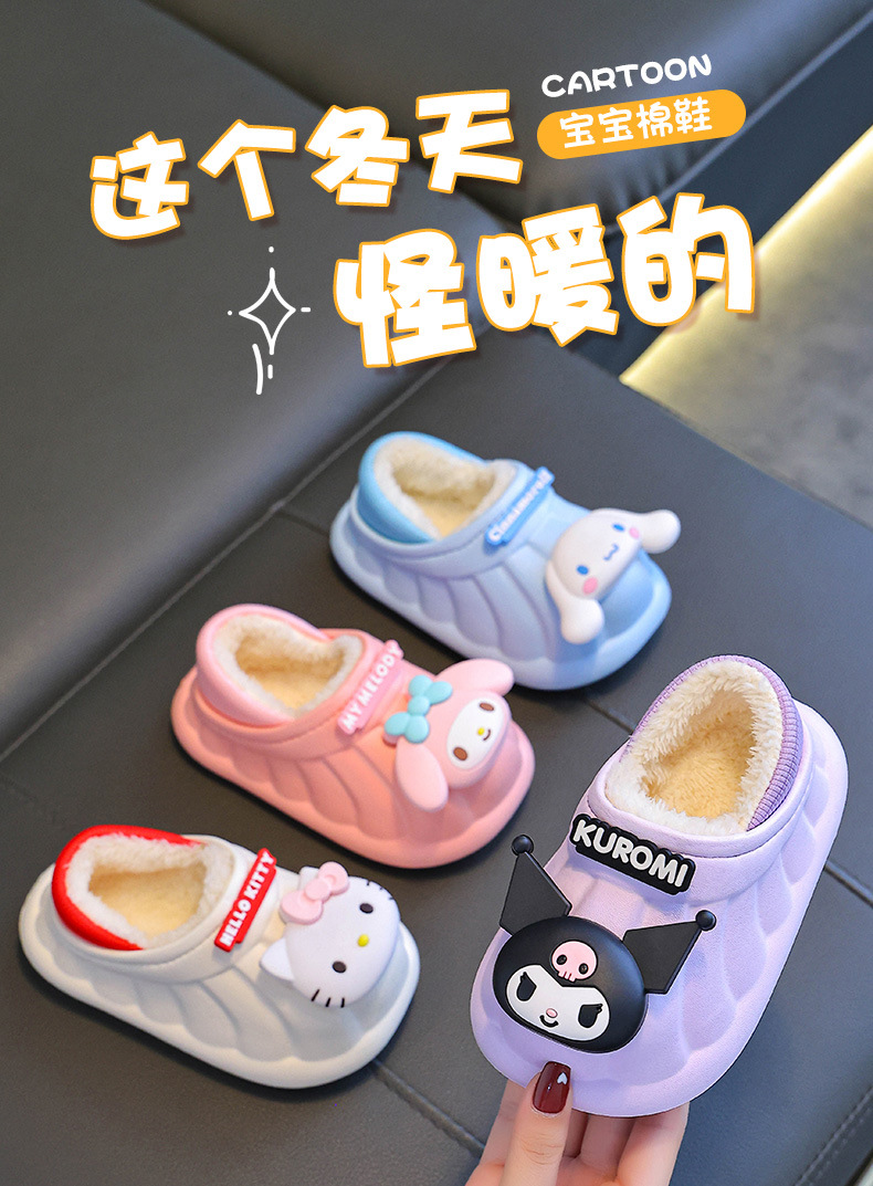산리오 겨울 어린이 가방 힐 코튼 슈즈 걸스 방수 따뜻한 기모 쿨리 미 어린이 아기 면 슬리퍼