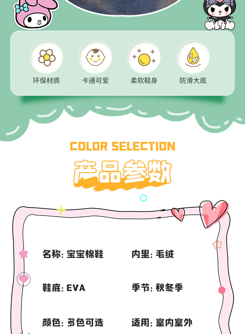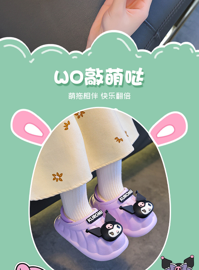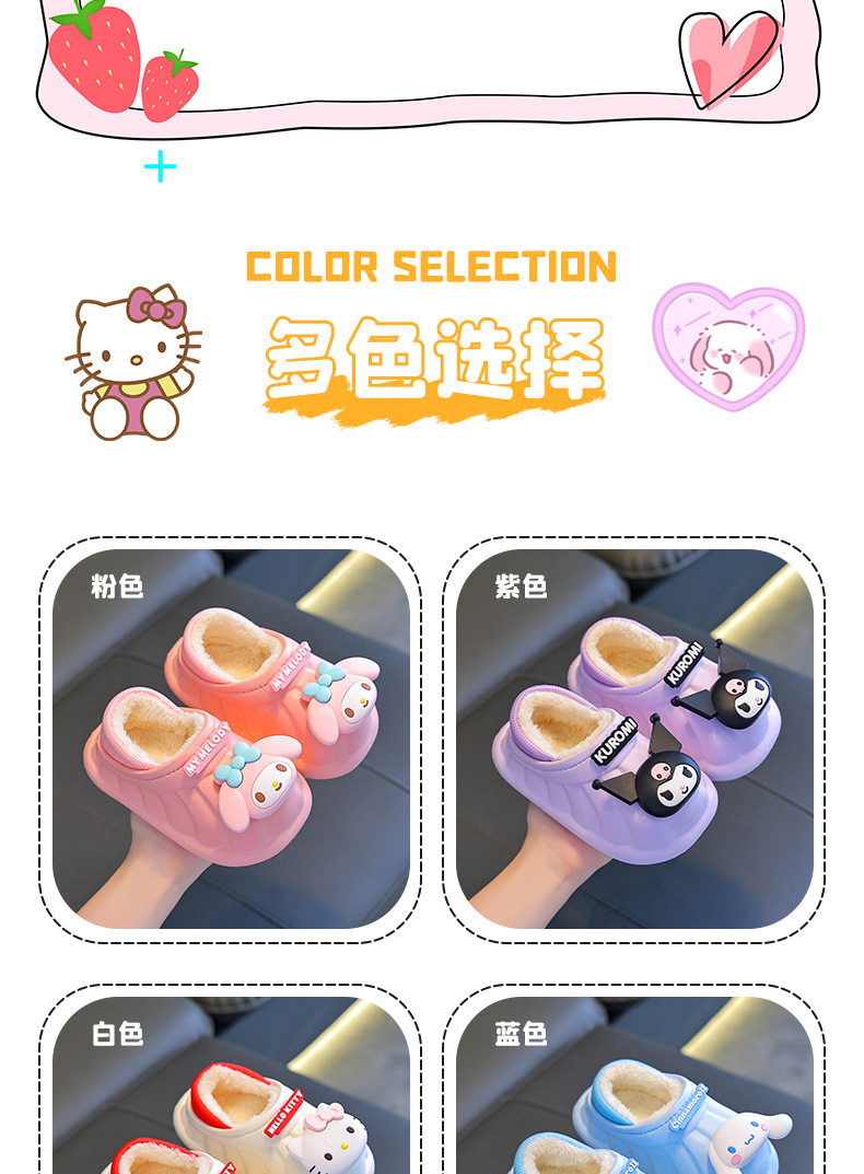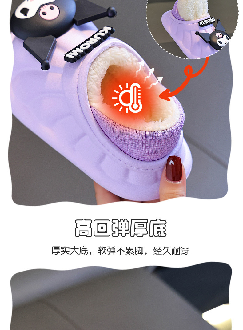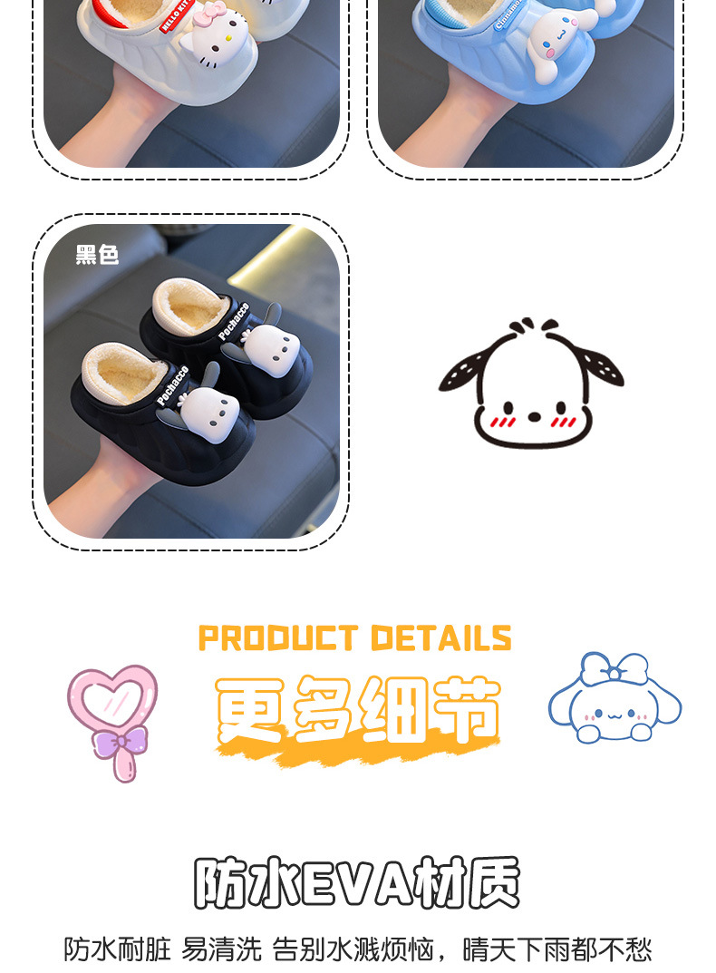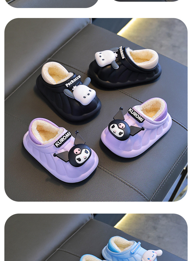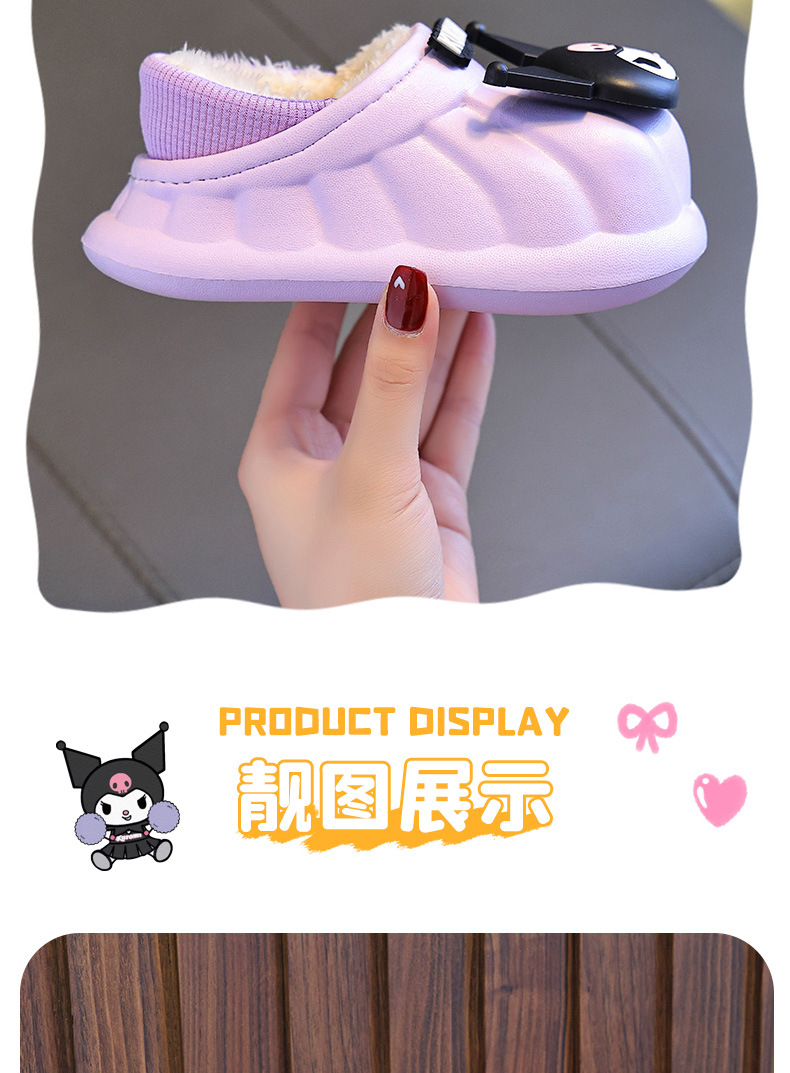 산리오 겨울 어린이 가방 힐 코튼 슈즈 걸스 방수 따뜻한 기모 쿨리 미 어린이 아기 면 슬리퍼
