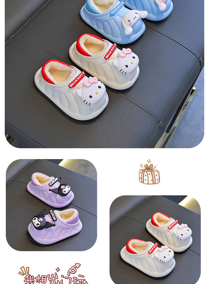 산리오 겨울 어린이 가방 힐 코튼 슈즈 걸스 방수 따뜻한 기모 쿨리 미 어린이 아기 면 슬리퍼스토어 가기
