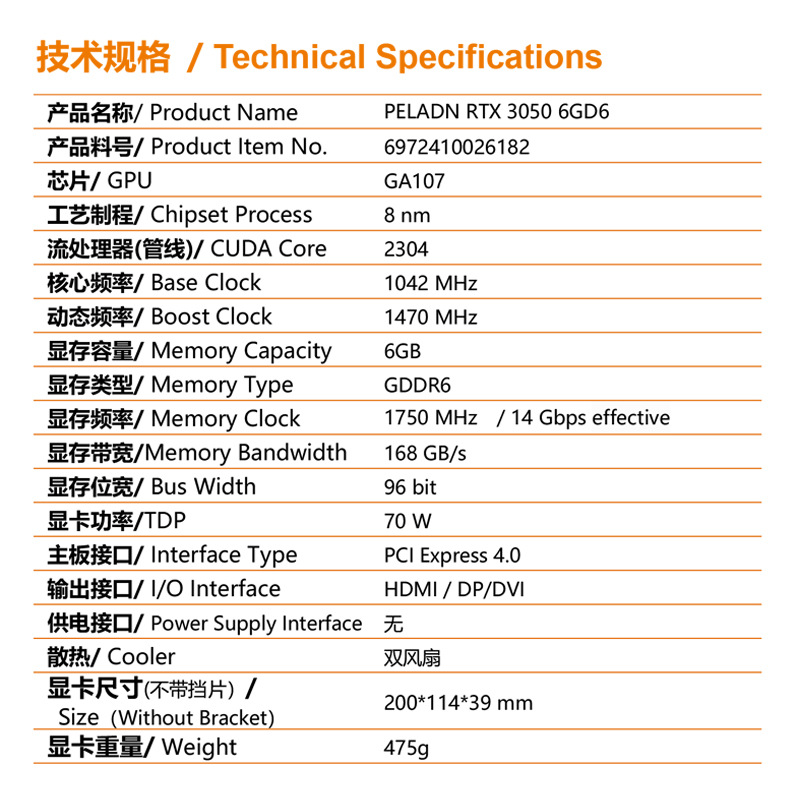 팬 라듐 RTX3050 6GDDR6 듀얼 팬 게임 그래픽 카드