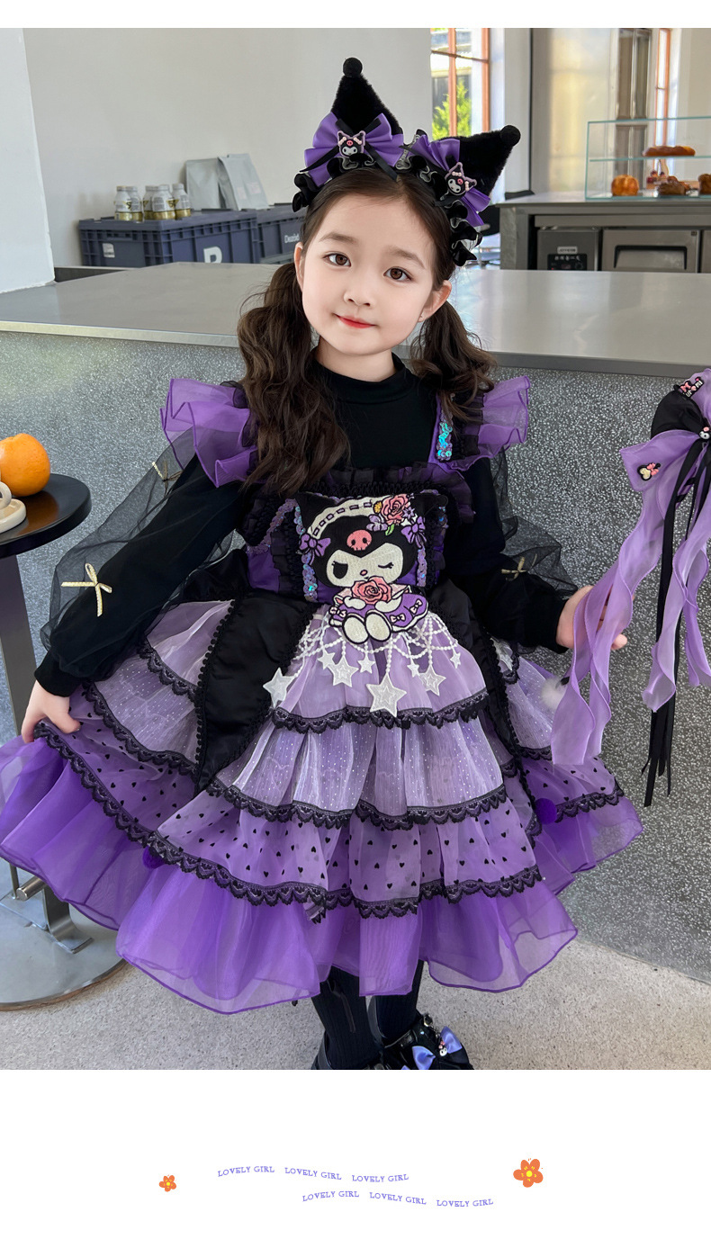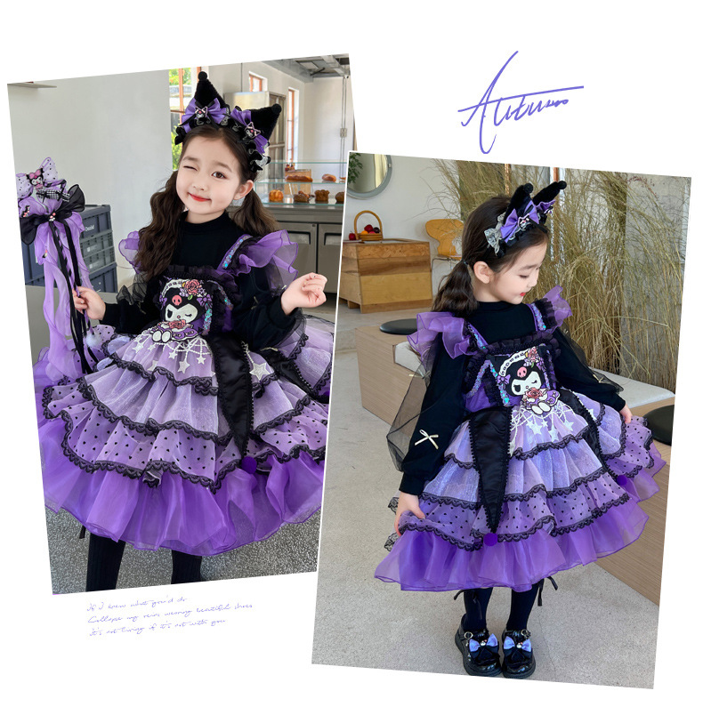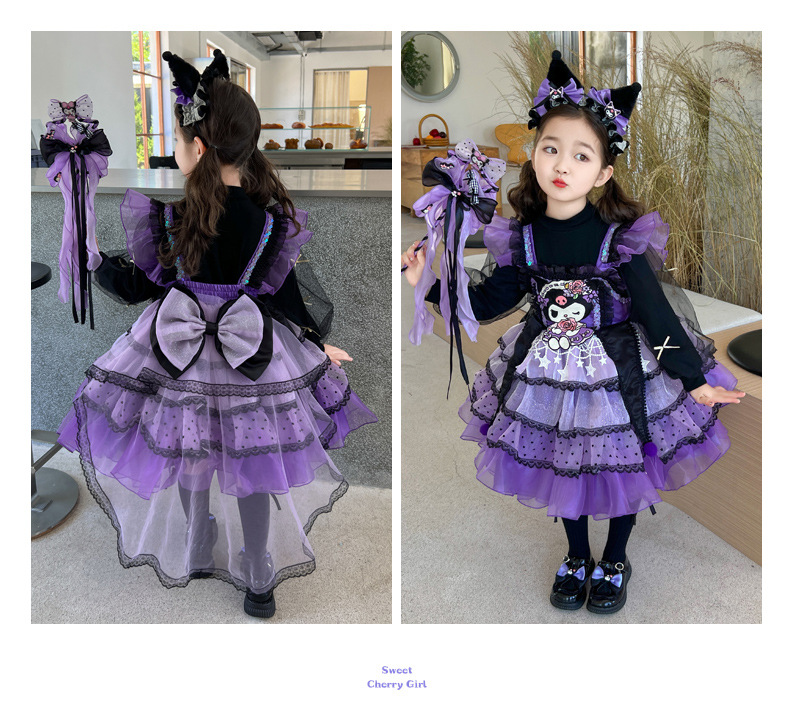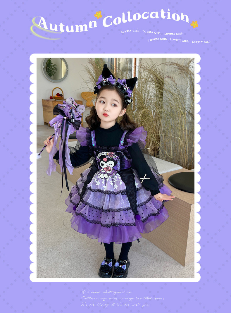 쿠로미 스커트 여아 봄 가을 원피스 아동용 멜빵 로리타 공주 스커트 여아 퍼프 스커트스토어 가기