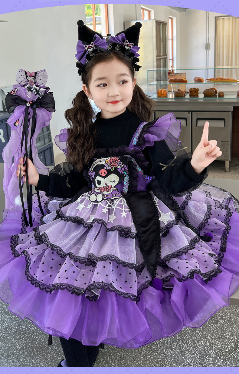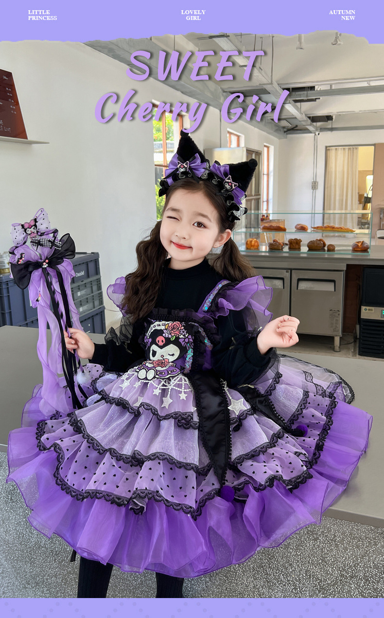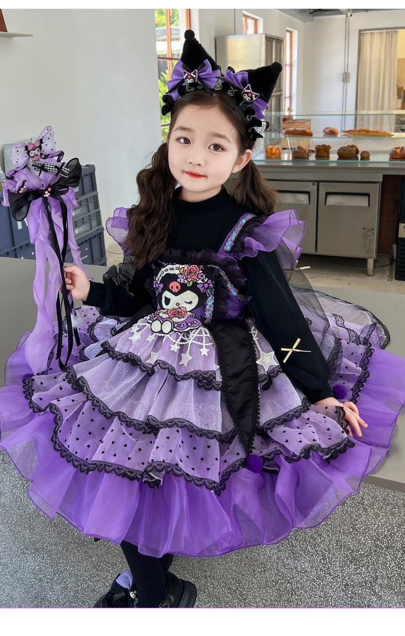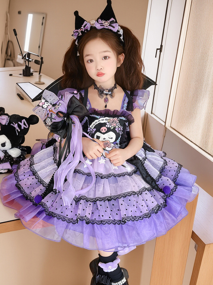 쿠로미 스커트 여아 봄 가을 원피스 아동용 멜빵 로리타 공주 스커트 여아 퍼프 스커트스토어 가기