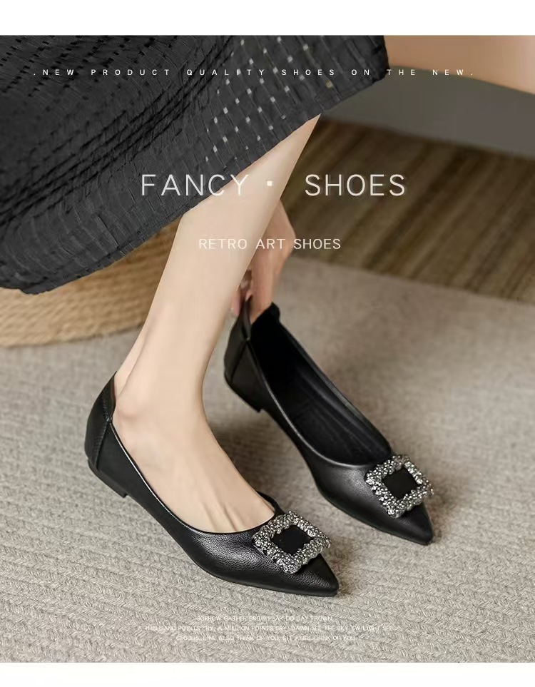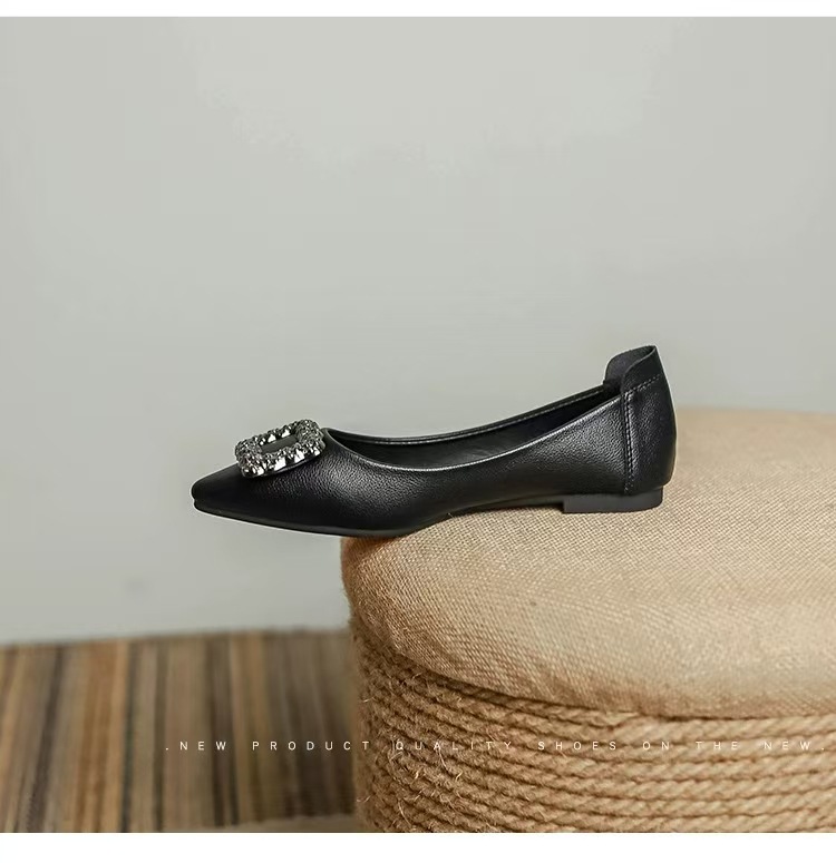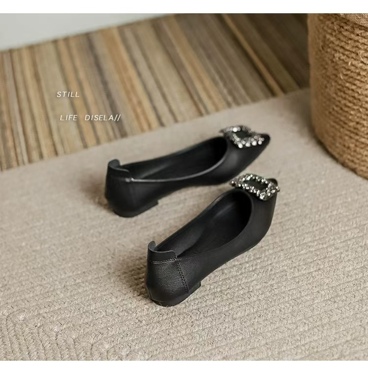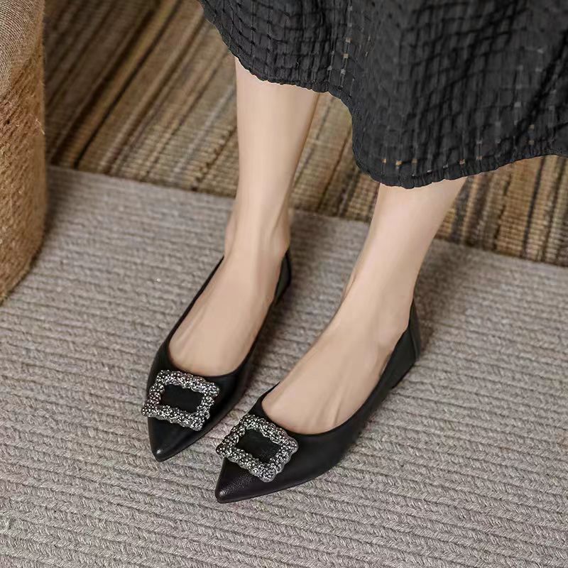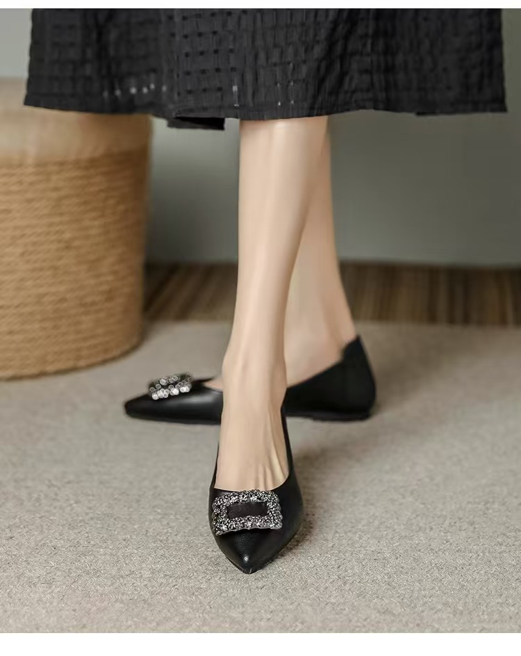 대외 무역 진짜 부드러운 가죽 얕은 입 싱글 레이어 신발 여성의 2024 새로운 프랑스 스타일 스퀘어 버클 작업 신발 뾰족한 발가락 미끄럼 방지 펌프 작은 가죽 신발