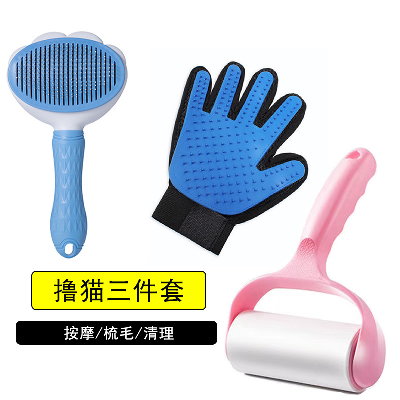 • 고양이 쓰다듬기 3종 세트 [장갑+빗+머리스틱]