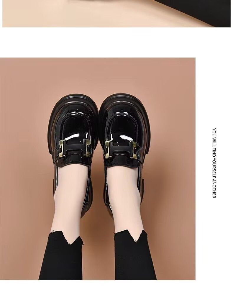 봄 새로운 한국 스타일 유행 라운드 발가락 두꺼운 세련된 캐주얼 플러스 사이즈 여성 깊은 입 금속 체인 여성 싱글 레이어 신발