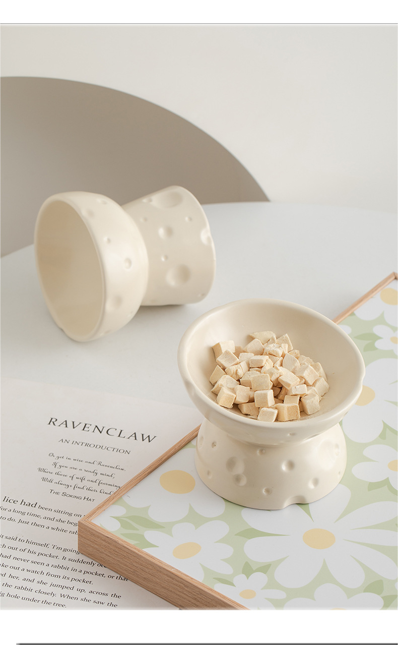독서 방법 창조적 인 치즈 모양 세라믹 애완 동물 그릇 고양이 보호 강아지 자궁 경부 척추 마시는 그릇 검은 턱 쌀 분지