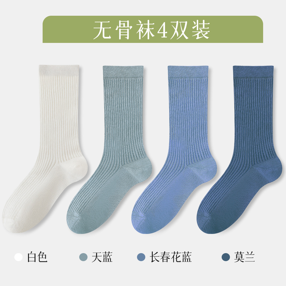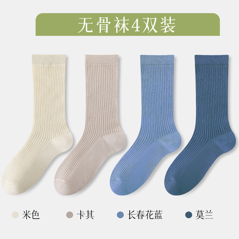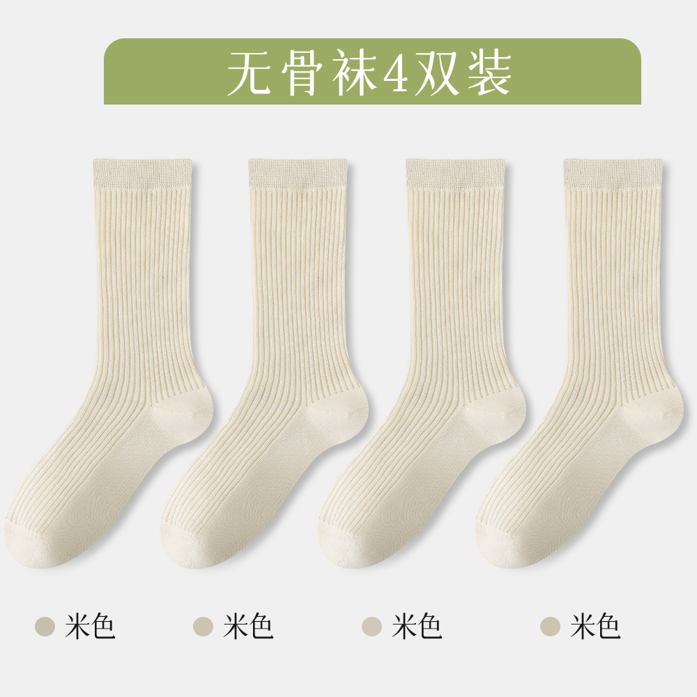 슈안 양말 여성 스타킹 봄과 가을 뼈없는 코튼 양말 항균 탈취제 흑백 스타킹 여성 * 4 쌍