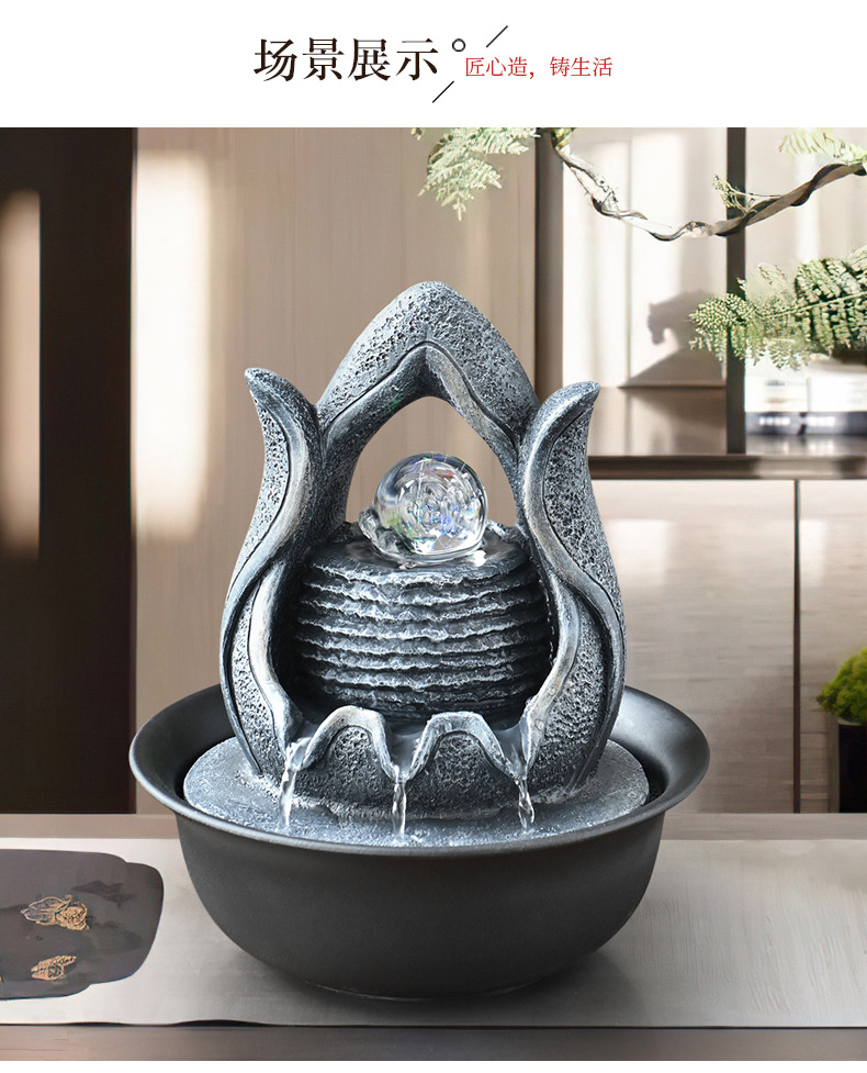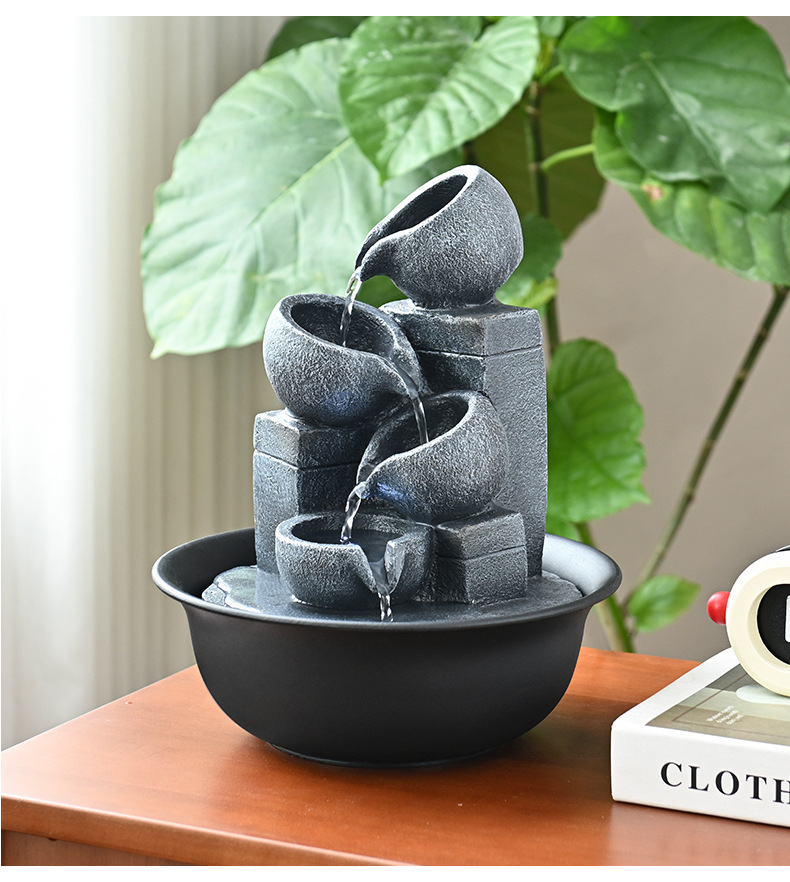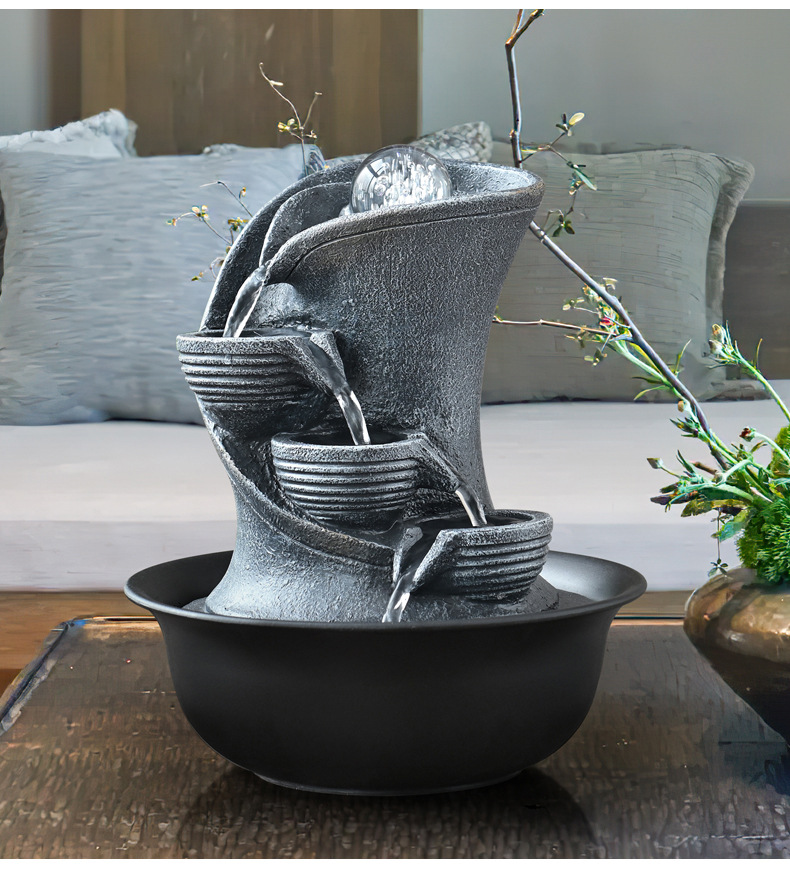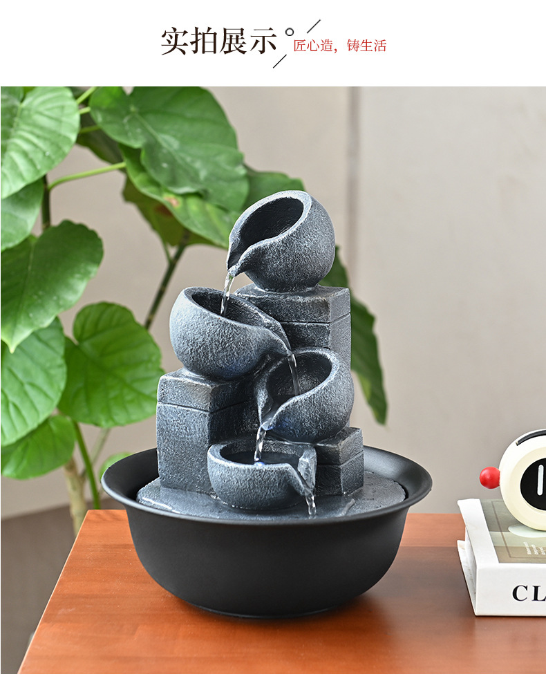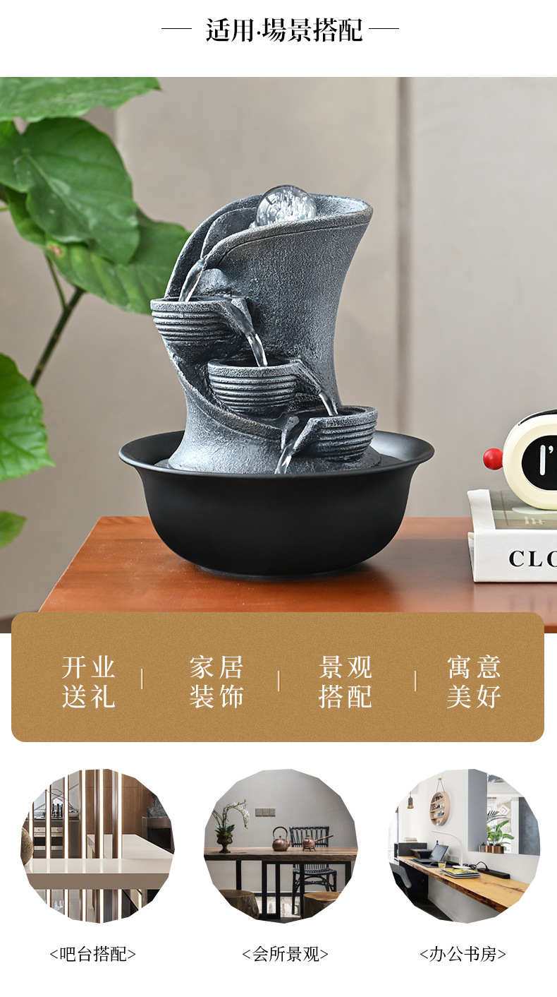 창조적 인 흐르는 물 분수 풍경 재산 작은 데스크탑 장식품 홈 장식 거실 현대적인 미니멀리스트 전용 국경스토어 가기