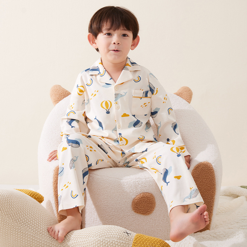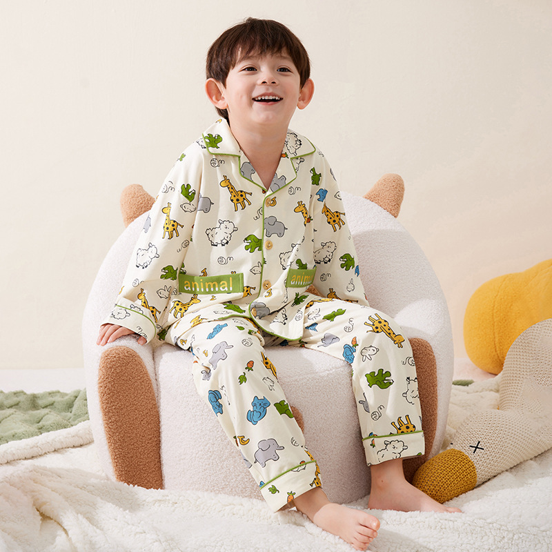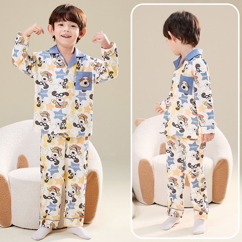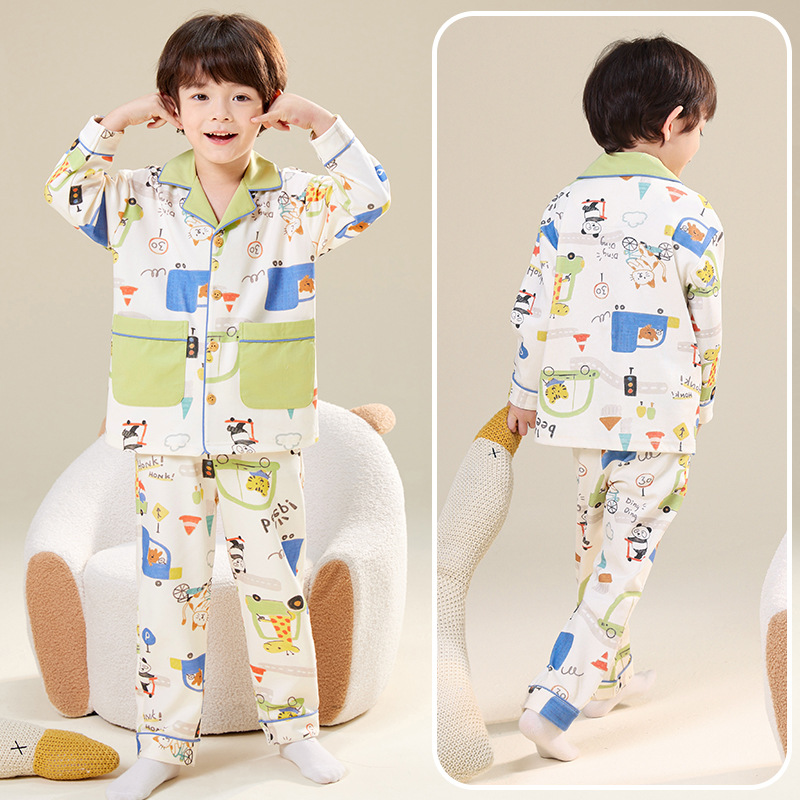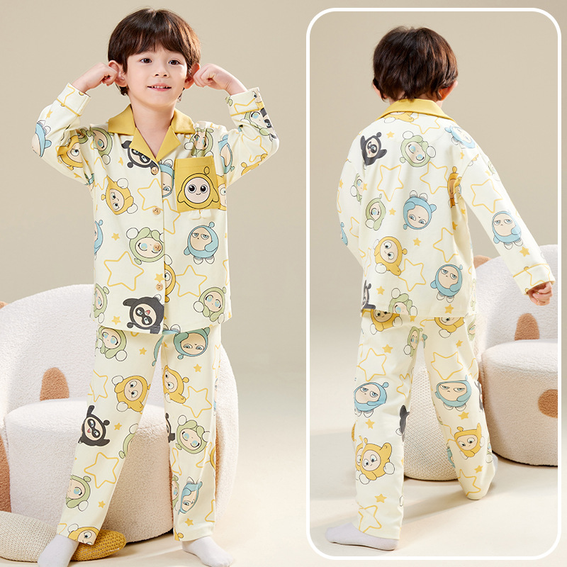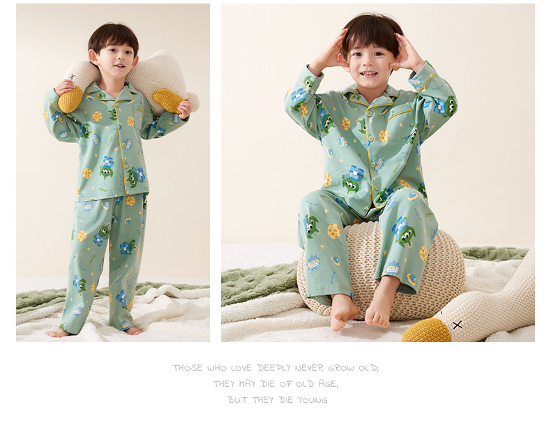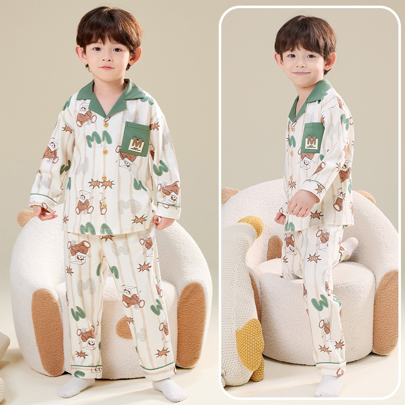 2025 새로운 소년 잠옷 봄과 가을면 긴 소매 작은 소년 중 큰 어린이 집 옷 면화 봄스토어 가기