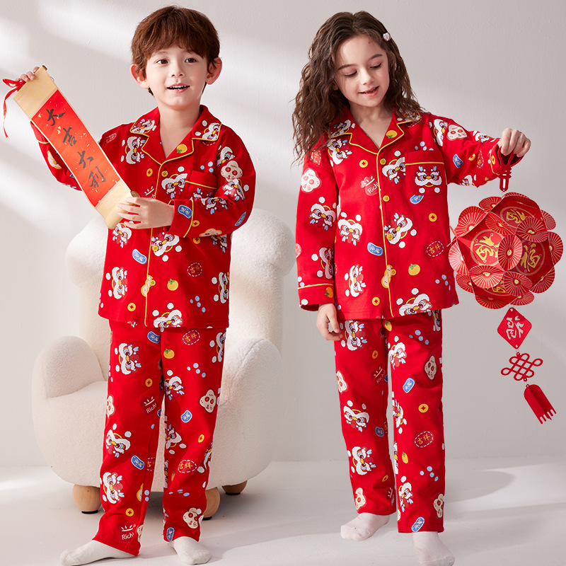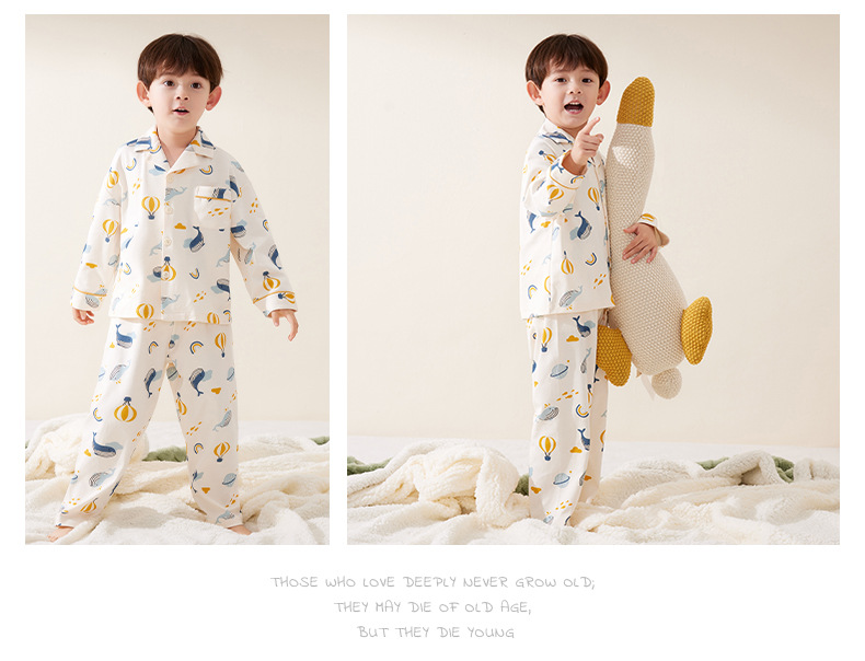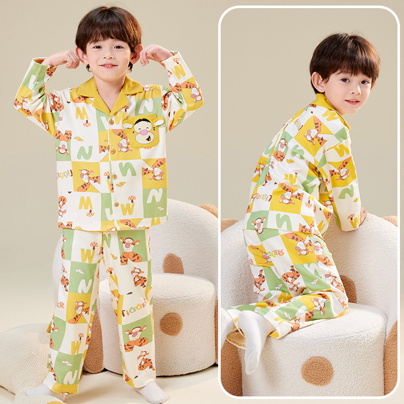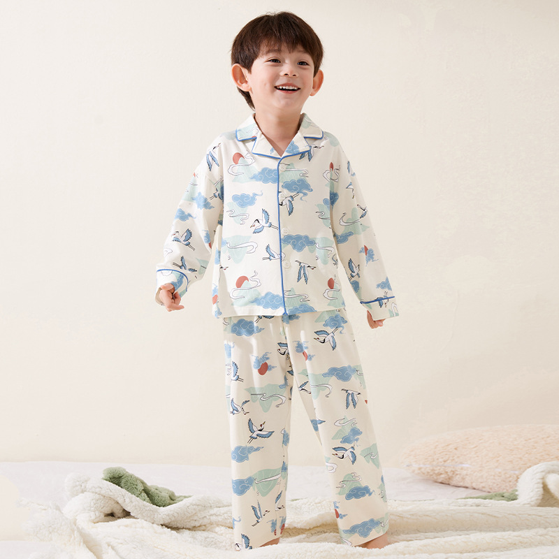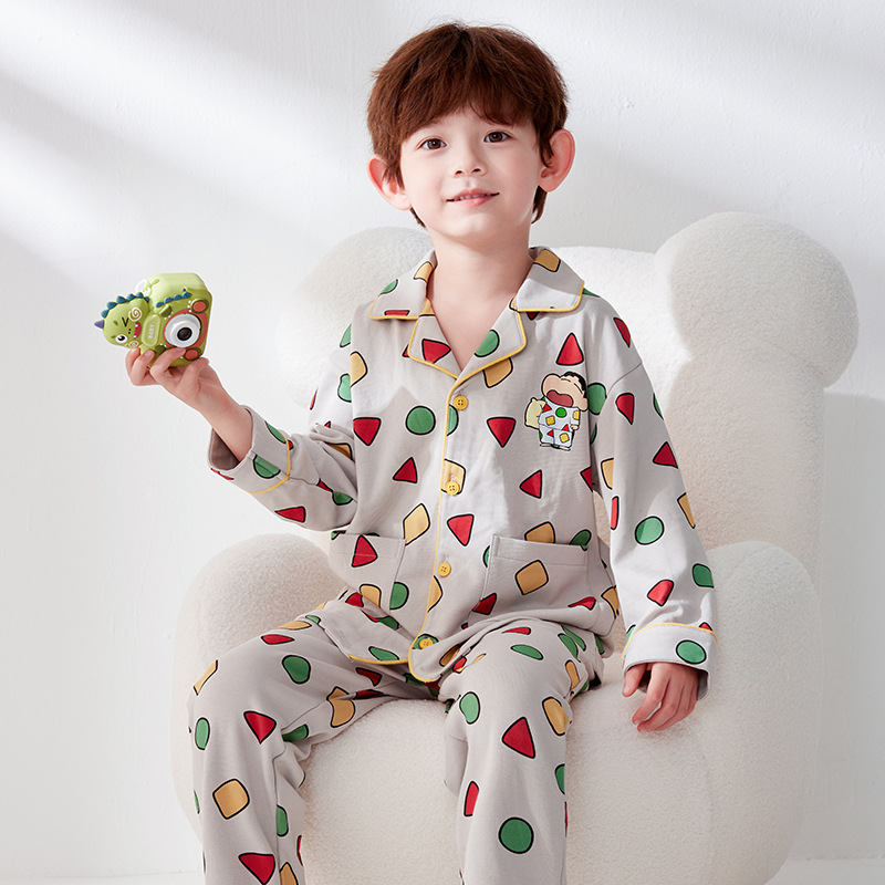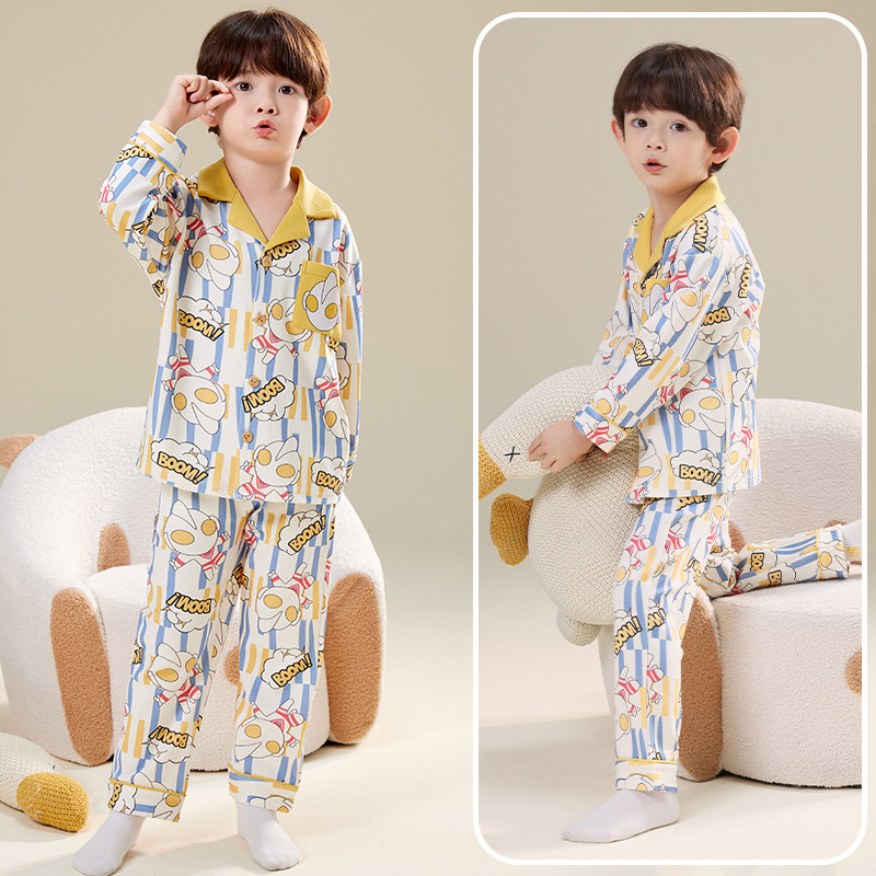 2025 새로운 소년 잠옷 봄과 가을면 긴 소매 작은 소년 중 큰 어린이 집 옷 면화 봄