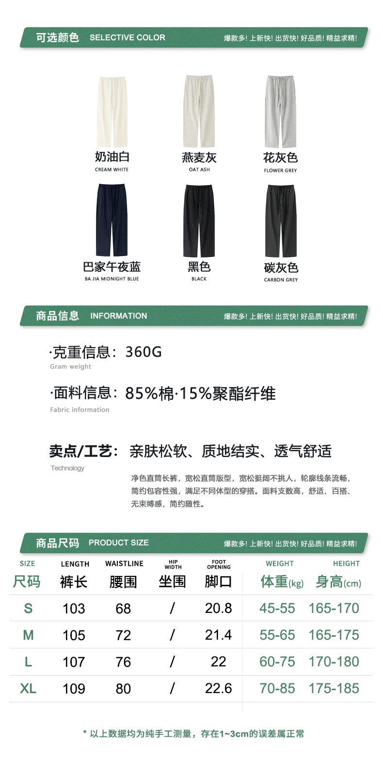 BE 남성복 | 2025년 가을 미국 헤비급 솔리드 컬러 스트레이트 바지 남성 트렌디 스포츠 스타일 스웨트 팬츠 크로스보더 맞춤 제작스토어 가기