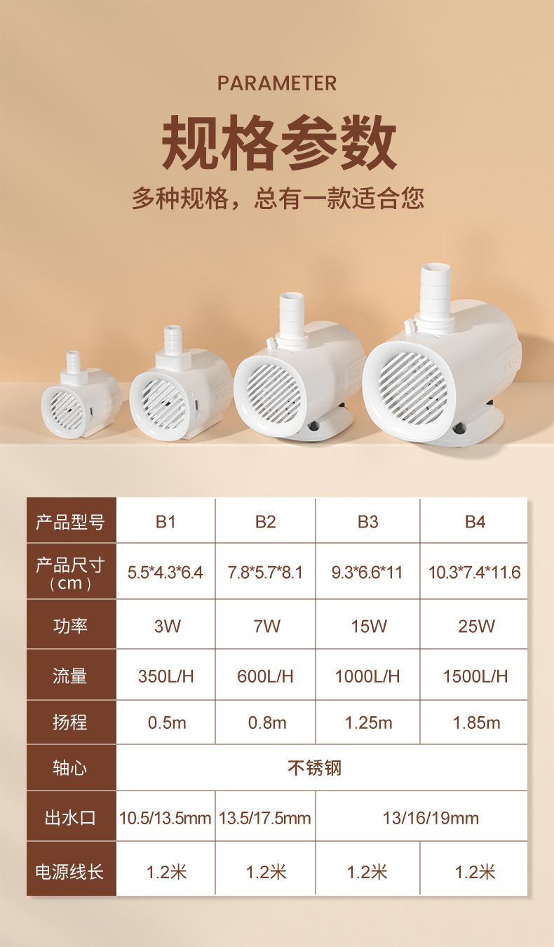 • (글레이즈 그레이) 15-30CM 수조에 적합한 3W 자체 청소 워터 펌프