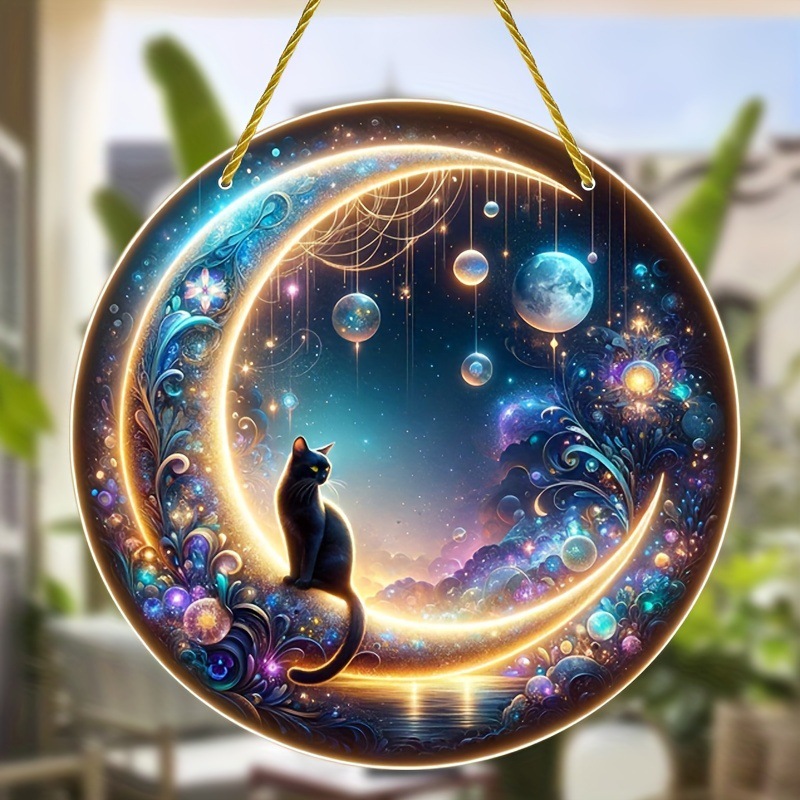 국경 마녀 검은 고양이 태양 포수 아크릴 창 장식 벽 장식 침실 창조적 인 공예 펜던트 홈 장식 교수형