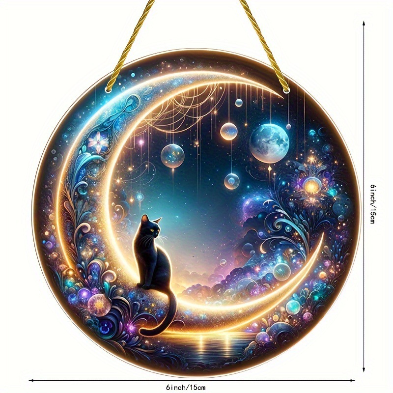 국경 마녀 검은 고양이 태양 포수 아크릴 창 장식 벽 장식 침실 창조적 인 공예 펜던트 홈 장식 교수형스토어 가기