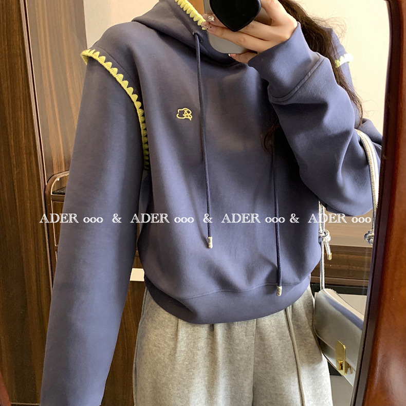 작은 자수 짧은 후드 스웨터 작은 느슨한 올 매치 캐주얼 후디 24 가을 ADER 틈새 트렌디 브랜드스토어 가기