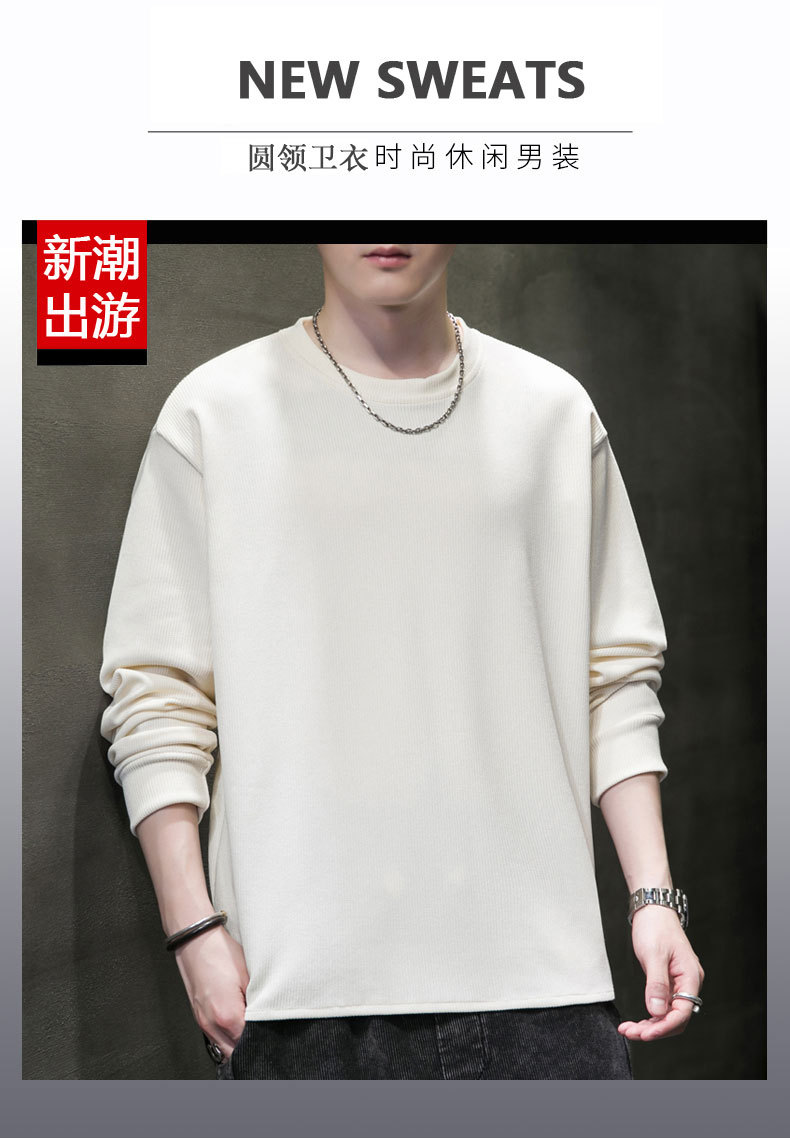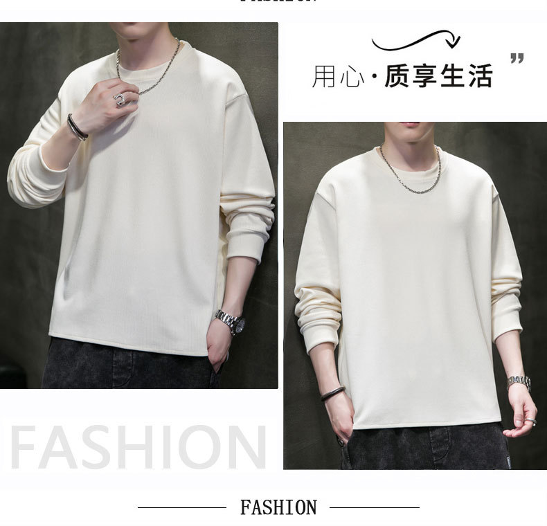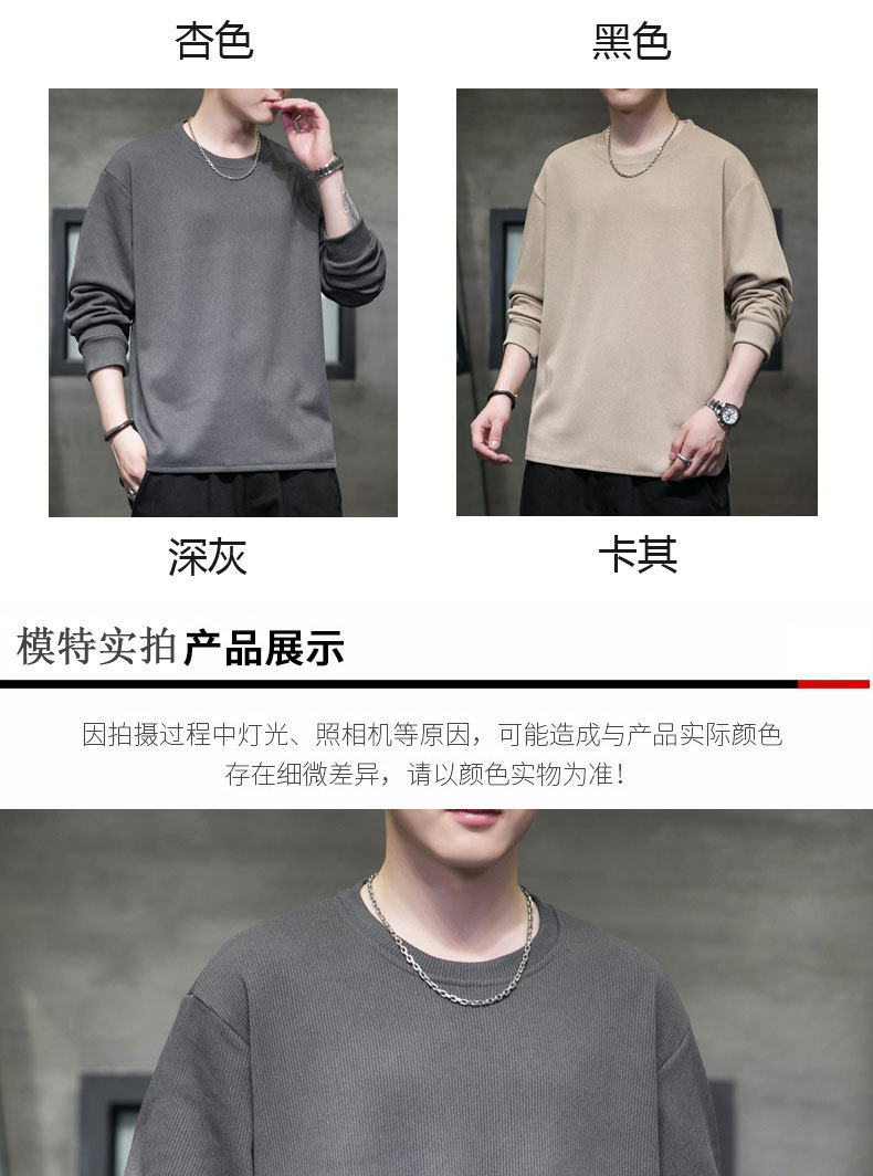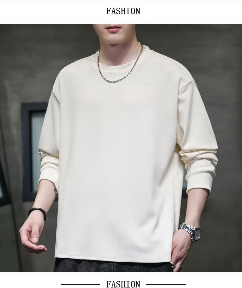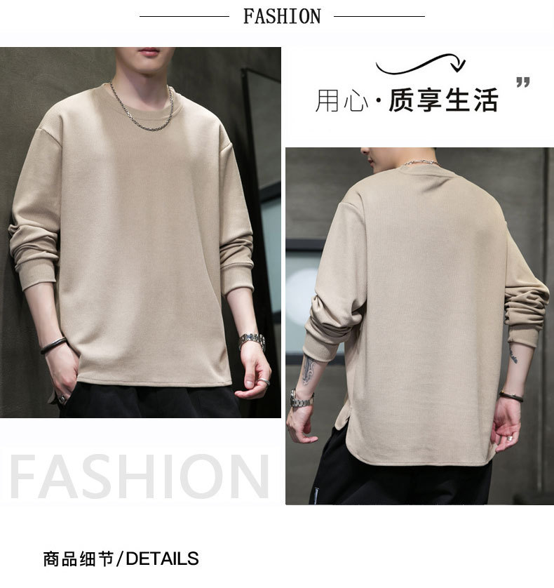 신상 남성용 긴팔 티셔츠 솔리드 컬러 라운드 넥 올 매치 티셔츠 디자인 센스 헴 스플릿 헤비 티셔츠 봄과 가을