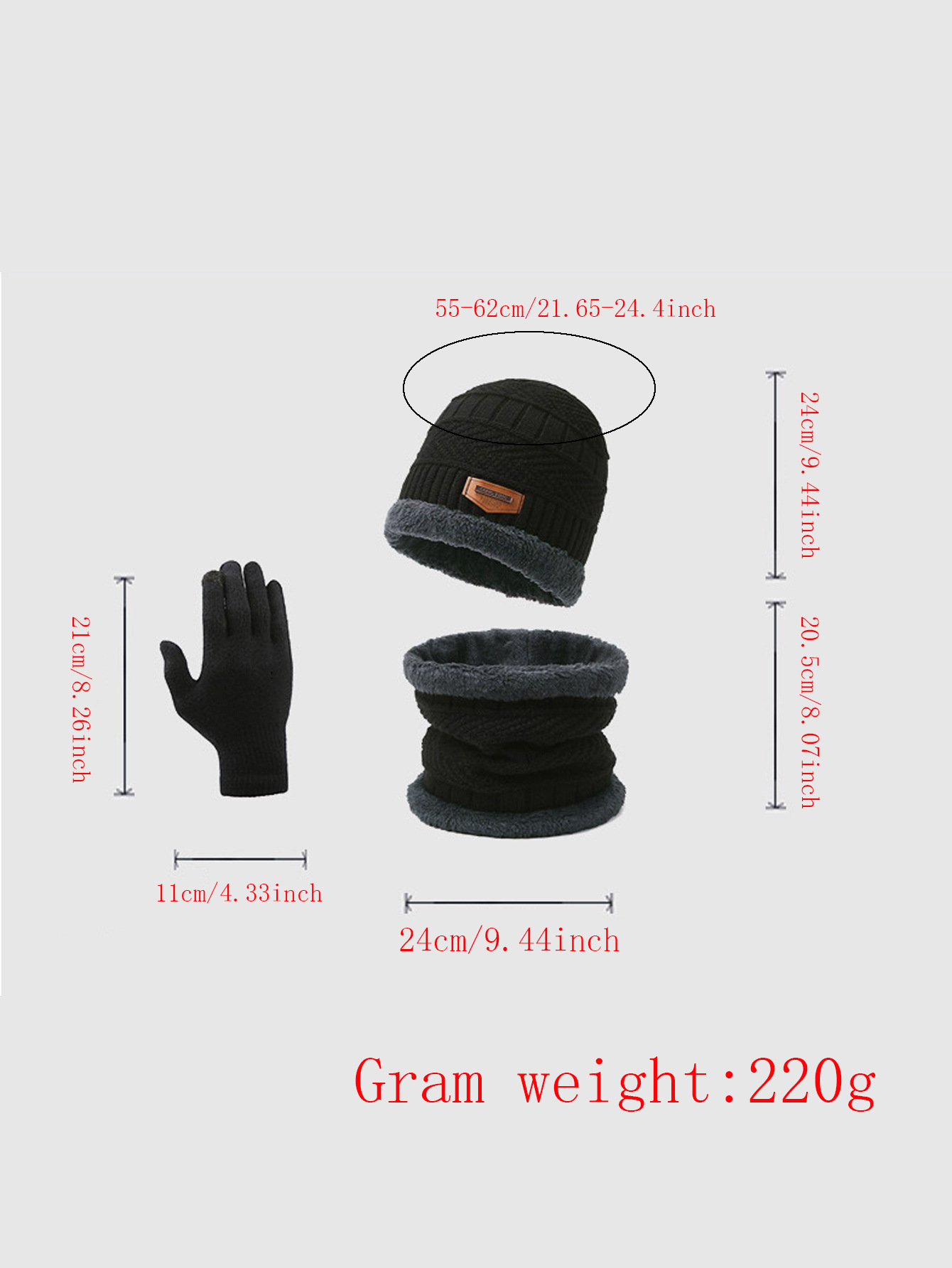 국경 3 피스 니트 모자 겨울 따뜻한 모자 미끄럼 방지 터치 스크린 장갑 기모 두꺼운 울 스카프 모자스토어 가기