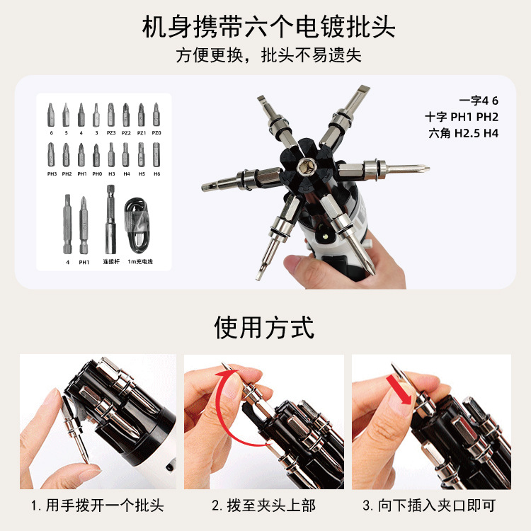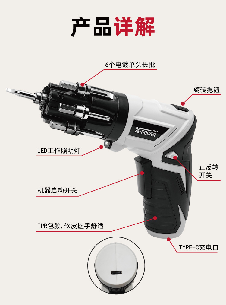 국경 간 공급 리튬 배터리 3.6V 충전식 전기 드라이버 TYPE-C 인터페이스 권총 스트레이트 핸들 드라이버 전기 드릴