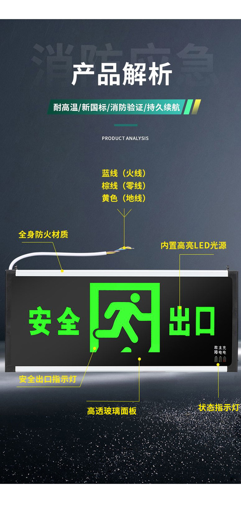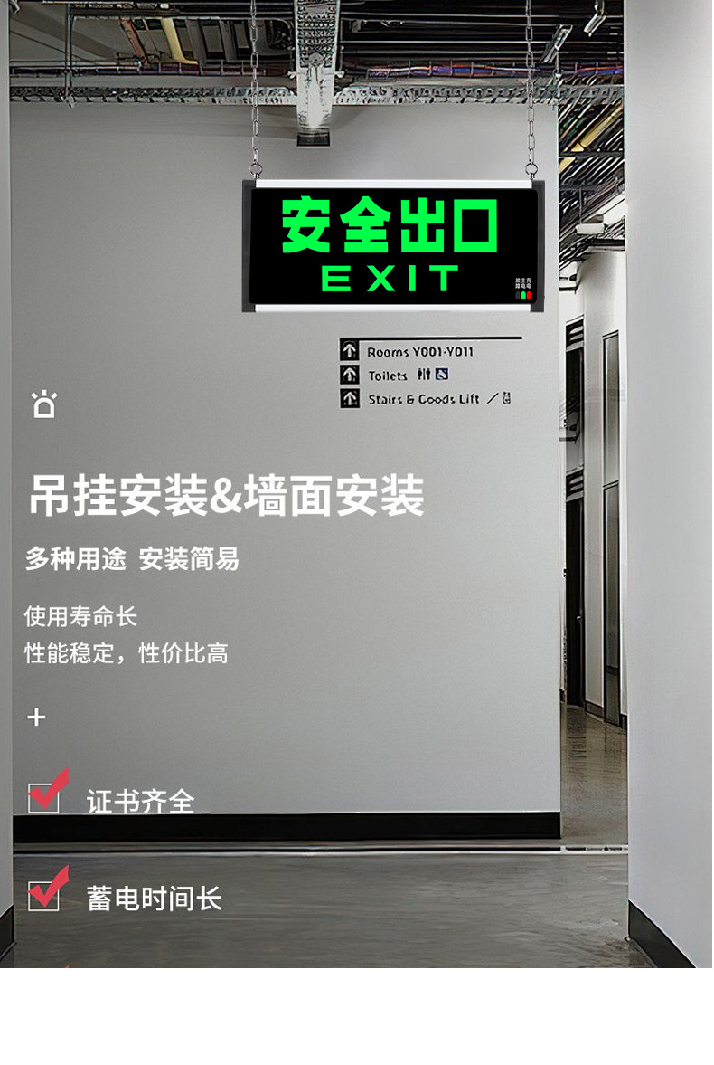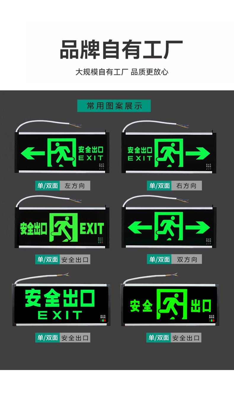 • 새로운 국가 표준 GB2024 버전 - 양면 - 안전한 출구