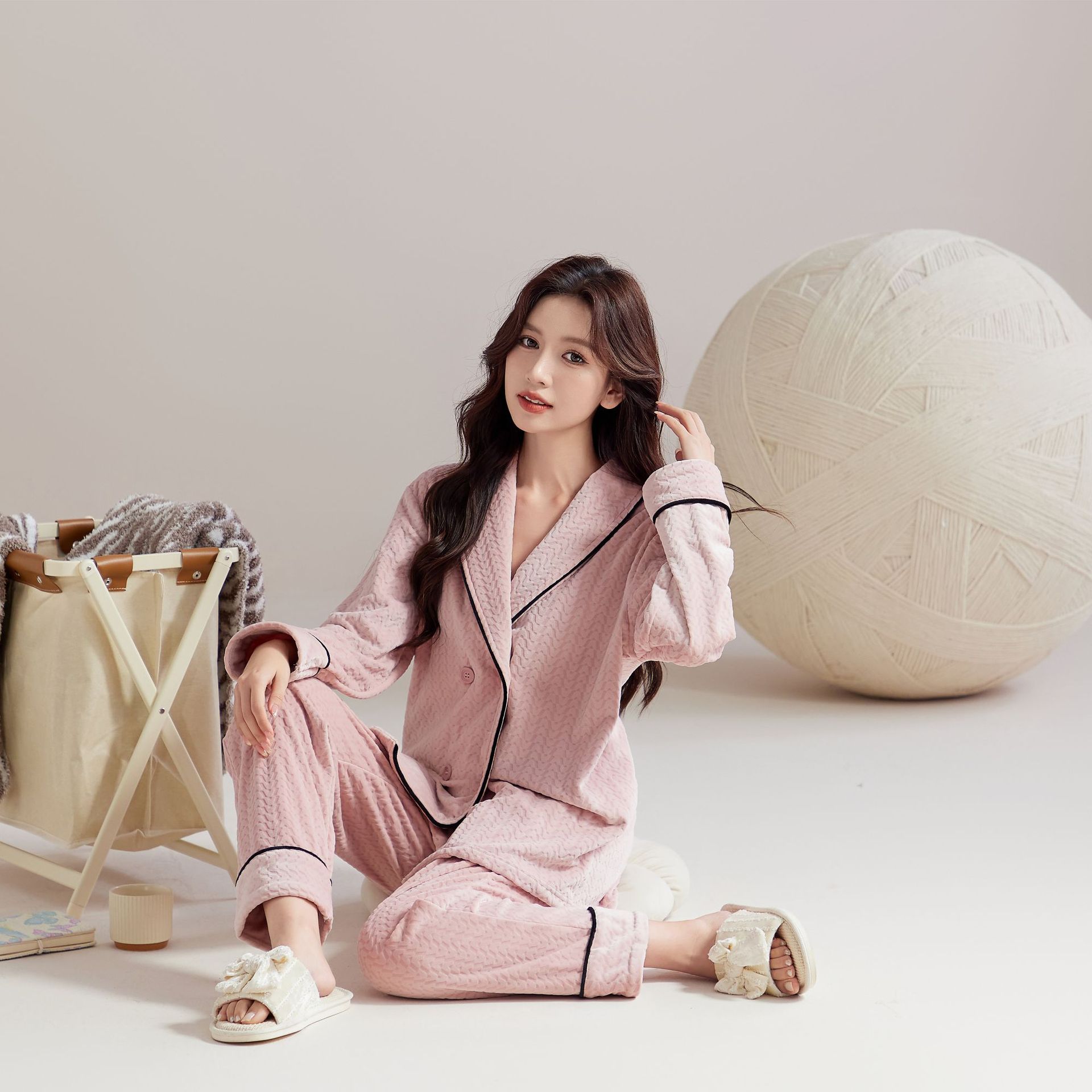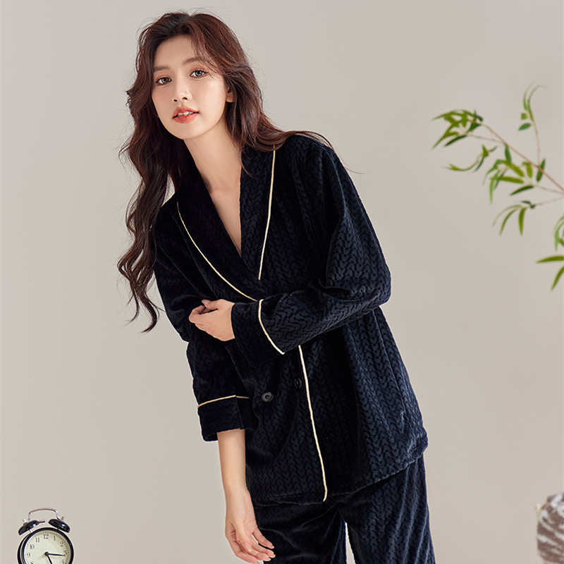 [겨울 약속] 섬벨벳 커플 잠옷 여성 겨울 세트 기모 심플한 고급 홈옷 남성스토어 가기