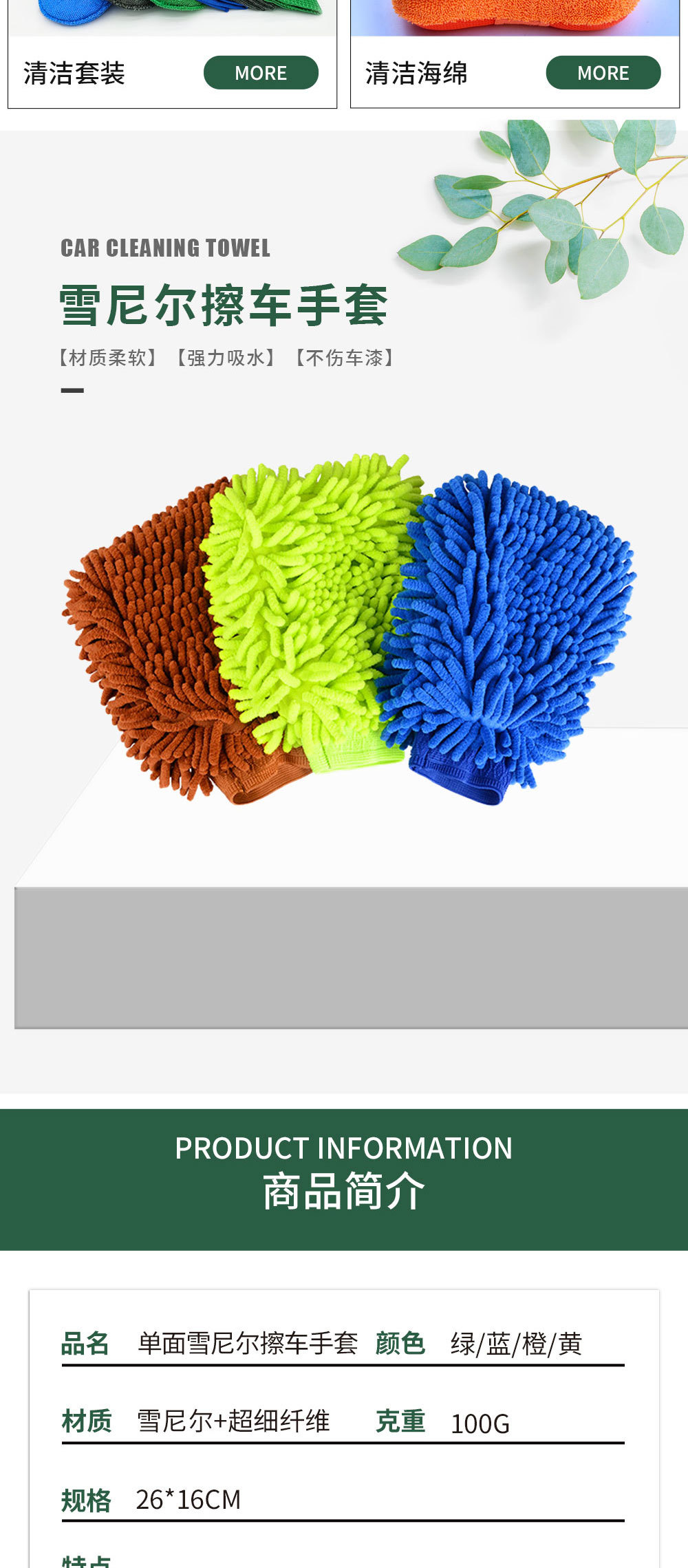 도매 단면 긴 머리 산호 양털 chenille 세차 장갑 세차 차 거품 장갑 유리스토어 가기