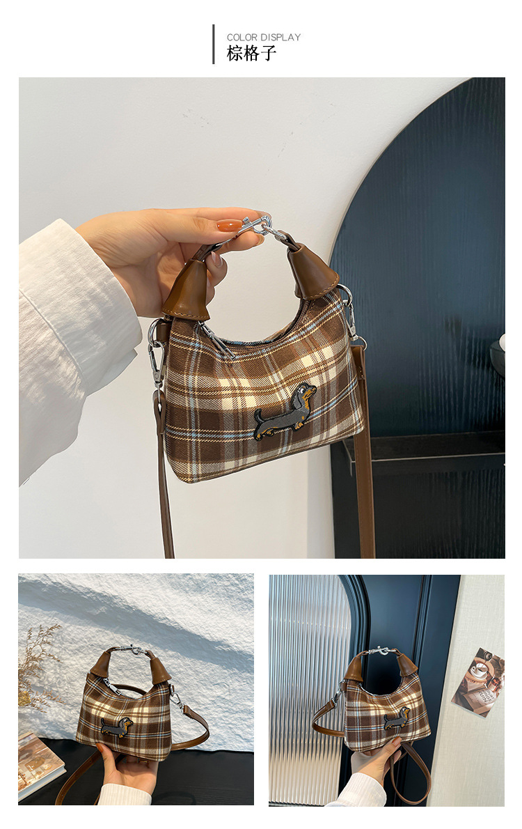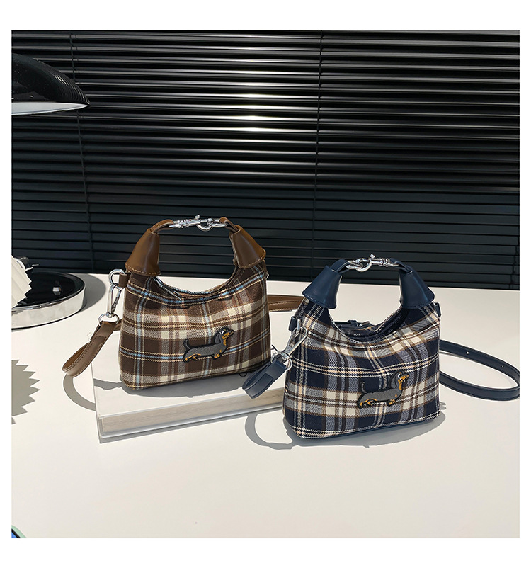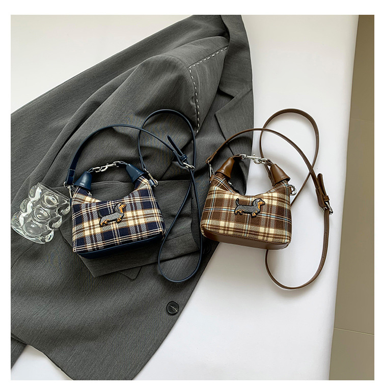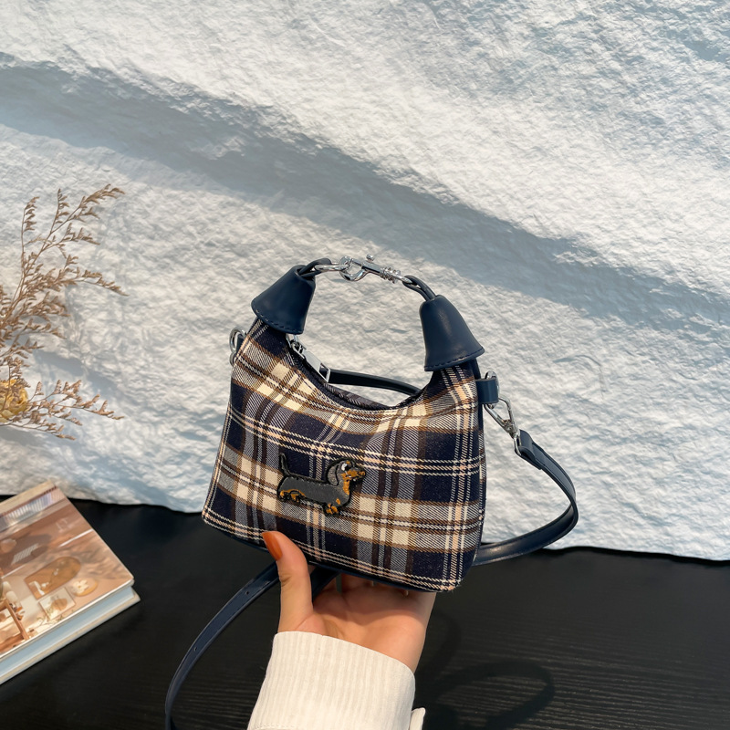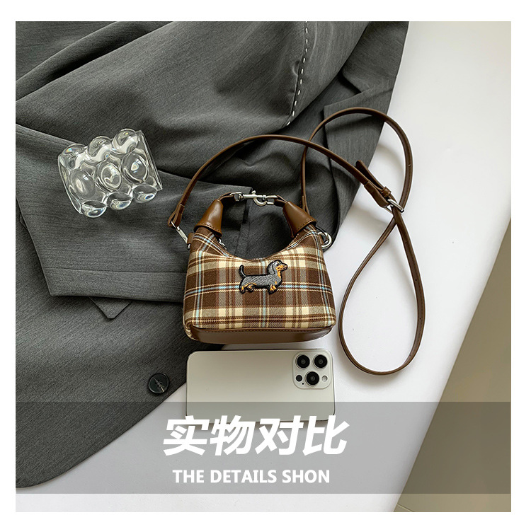 인터넷 붉은 가을과 겨울 새로운 복고풍 격자 무늬 강아지 한국 휴대용 미니 크로스 바디 액세서리 작은 가방 도매스토어 가기