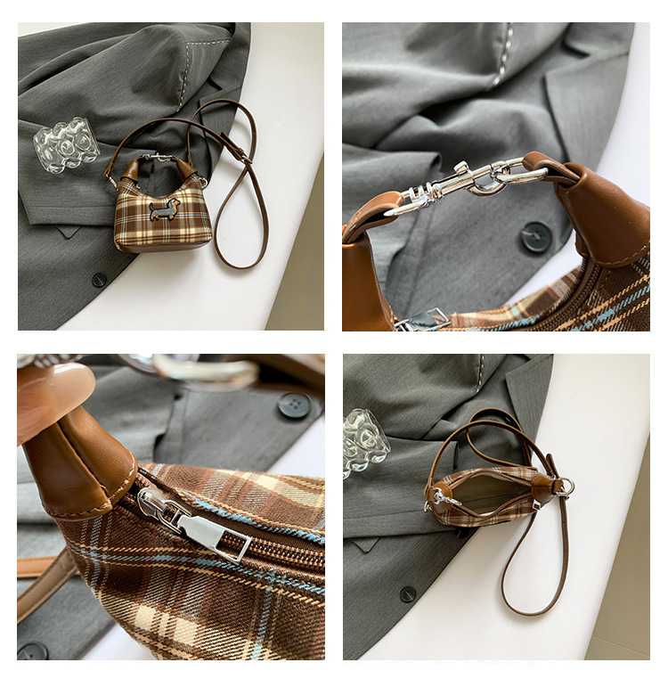 인터넷 붉은 가을과 겨울 새로운 복고풍 격자 무늬 강아지 한국 휴대용 미니 크로스 바디 액세서리 작은 가방 도매