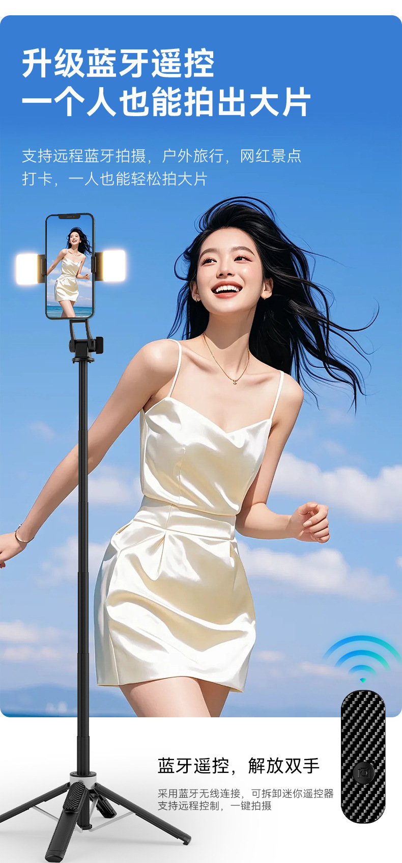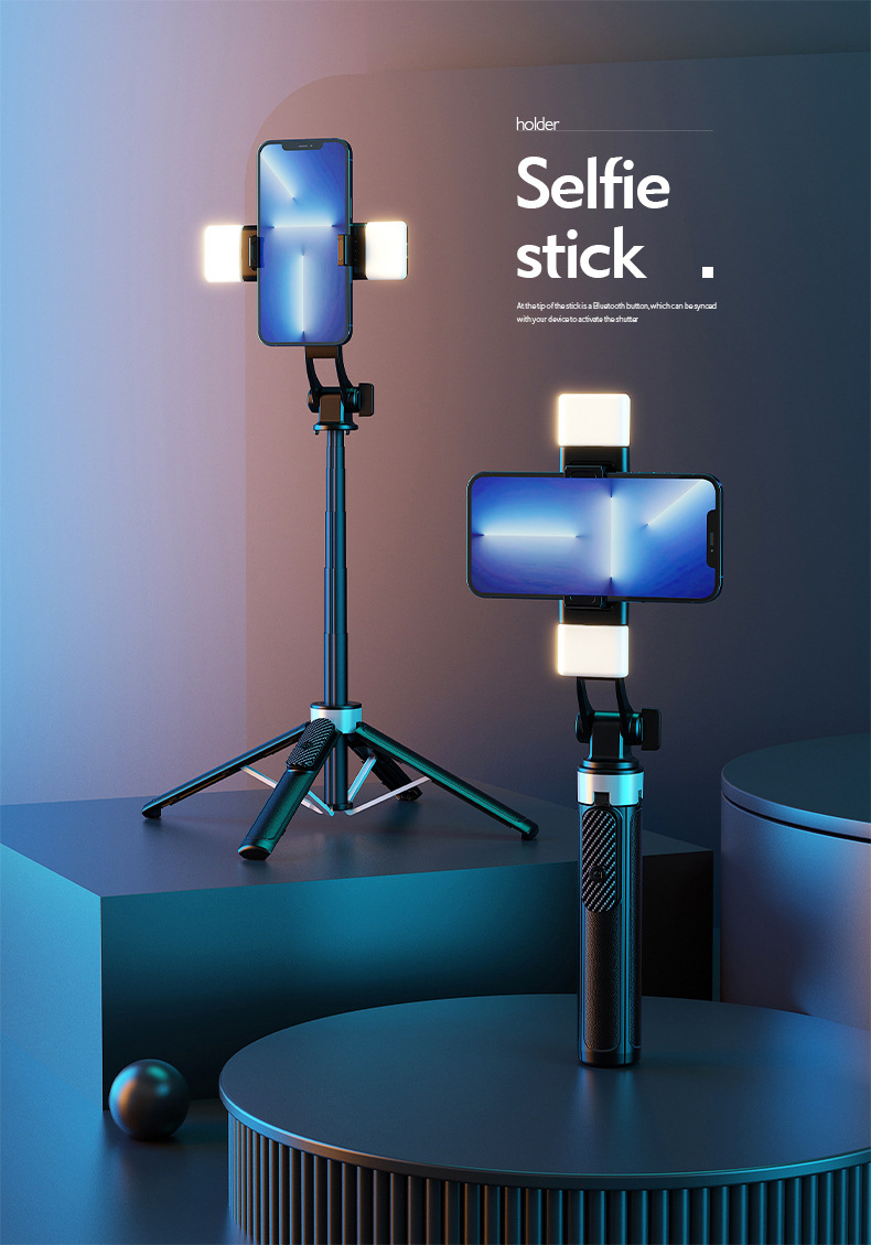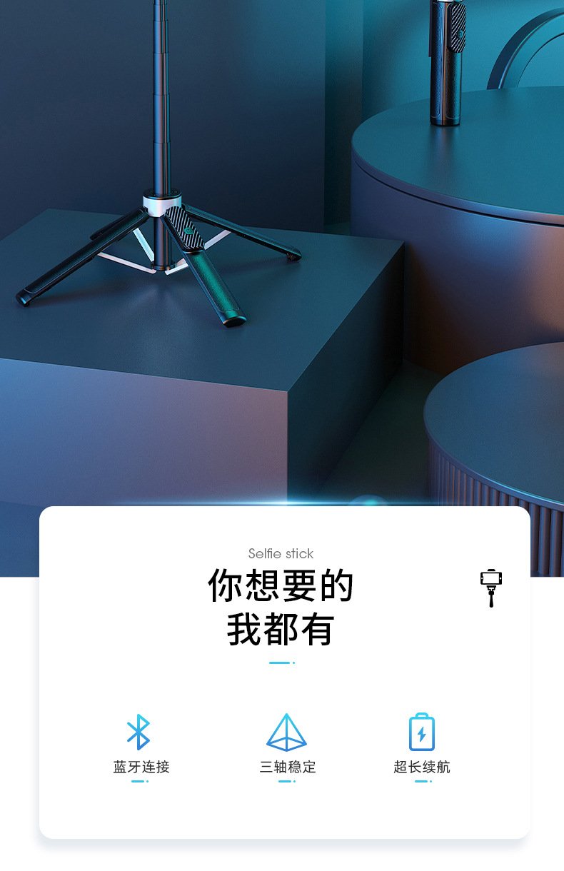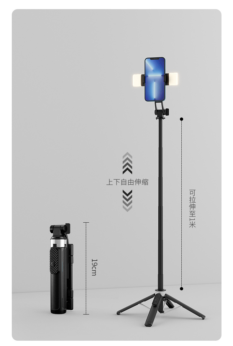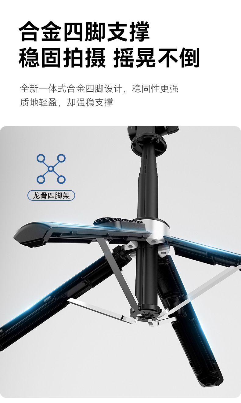 U9 알루미늄 합금 휴대폰 블루투스 원격 제어 셀카봉 1m Douyin 라이브 사진 촬영 스테인레스 스틸 4다리 금속 스탠드