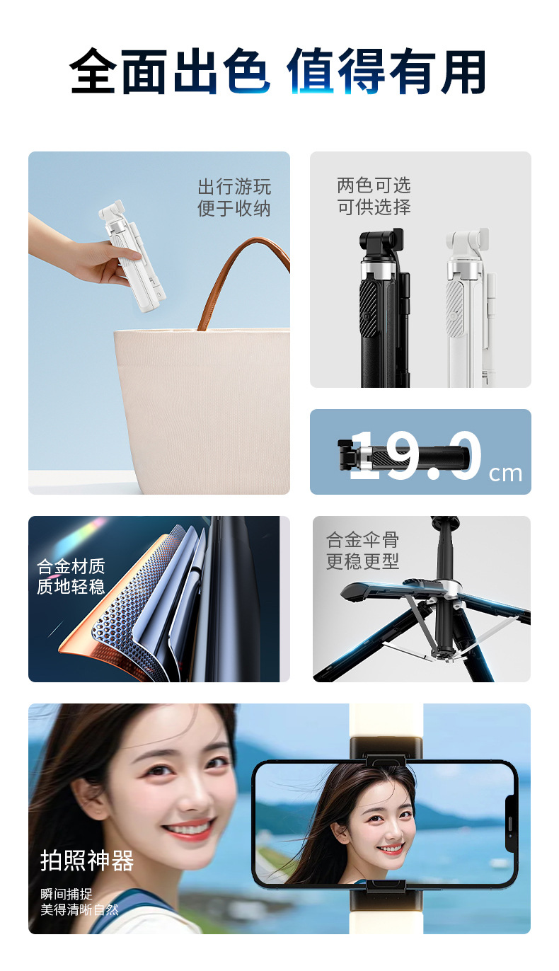 U9 알루미늄 합금 휴대폰 블루투스 원격 제어 셀카봉 1m Douyin 라이브 사진 촬영 스테인레스 스틸 4다리 금속 스탠드스토어 가기