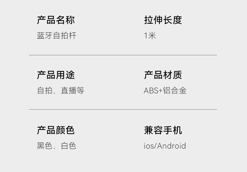 • U9-블루투스 셀카봉 [ 1m 알루미늄 합금 4각 스탠드 ] - 화이트