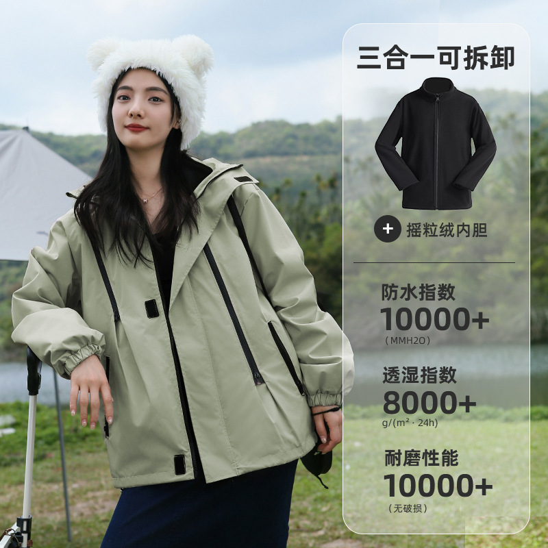 가을 겨울용 3-in-1 탈부착 방풍 방수 보온 남녀공용 재킷 아웃도어 하이킹 등산복