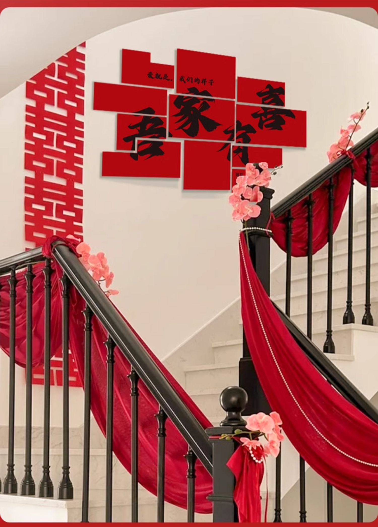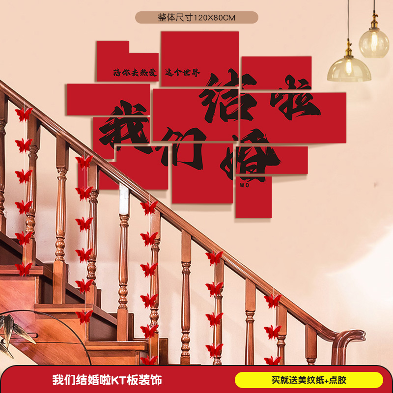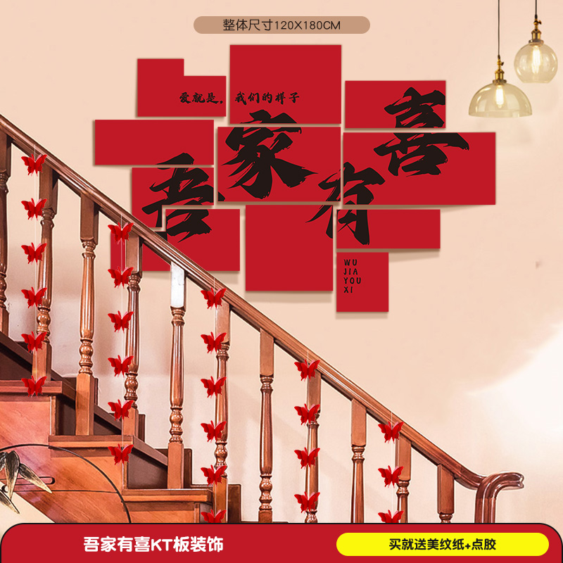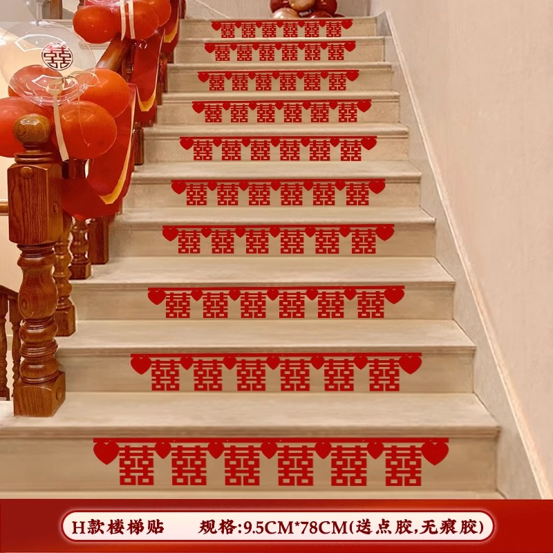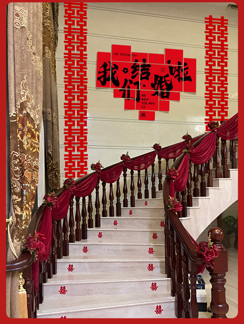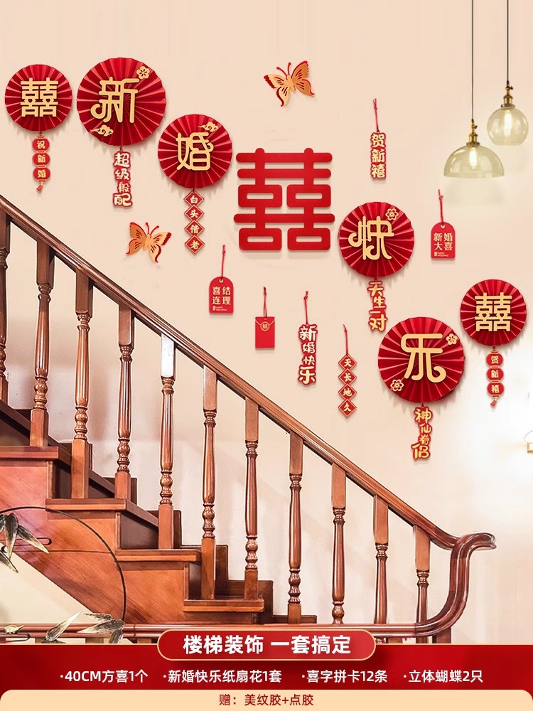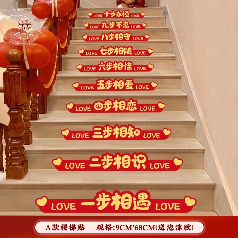 계단 장식 웨딩 장식 벽 코너 핸드레일 단계 남성과 여성을위한 해피 단어 스티커 새로운 웨딩 룸 원피스 배경 벽